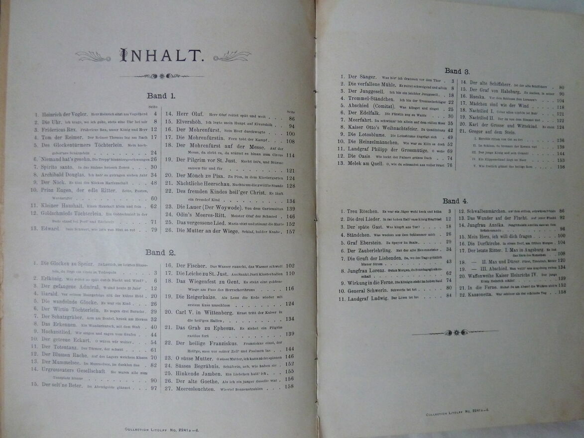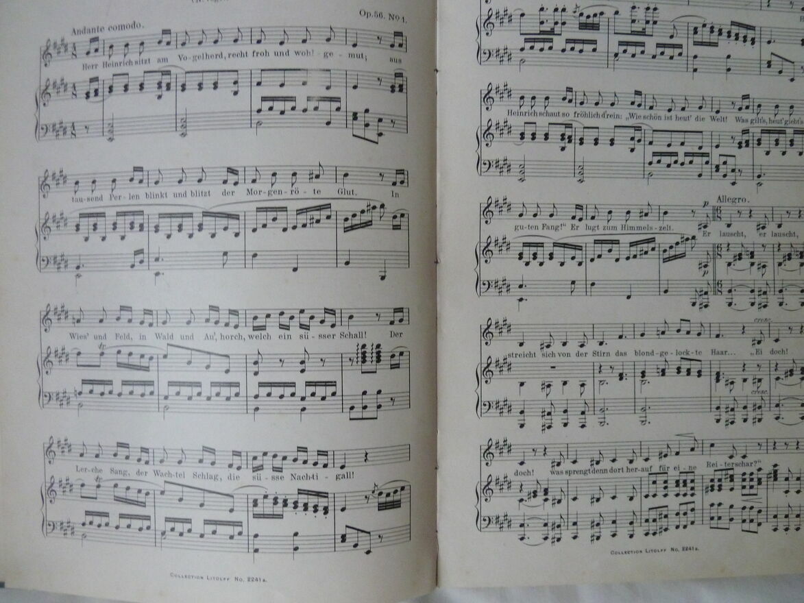 dla kolekcjonera, wydawnictwo Henry Litolffs z Brunszwiku, 1910 rok, stan bardzo dobry, format 20x28,5 cm, twarda oprawa, 159 stron, w języku niemieckim, nuty 26 utworów na głos i fortepian, wykaz na 4 zdjęciu, odbiór tylko osobisty w Warszawie.Sprawdź zainteresowanie tym ogłoszeniem