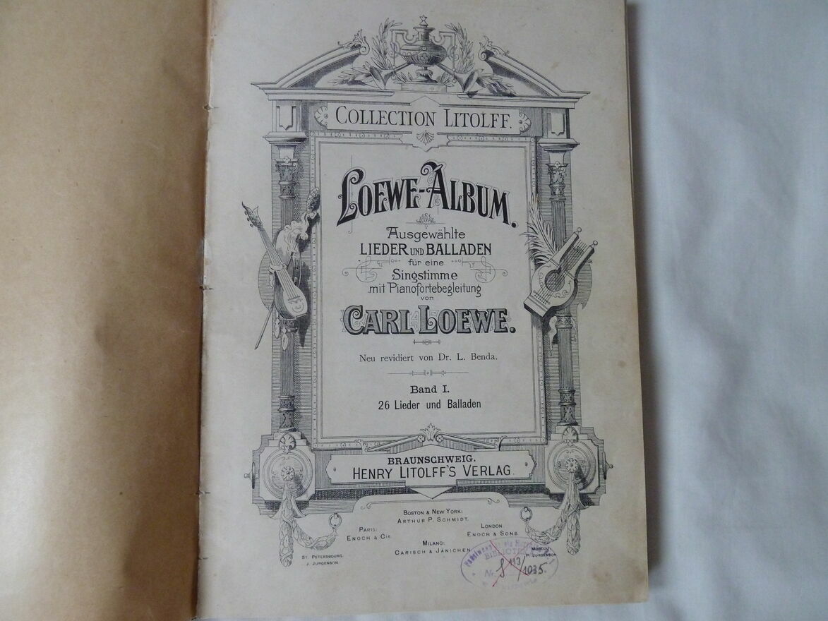 Carl Loewe Album, nuty 26 piosenek i ballad, wyd. z 1910 r.
