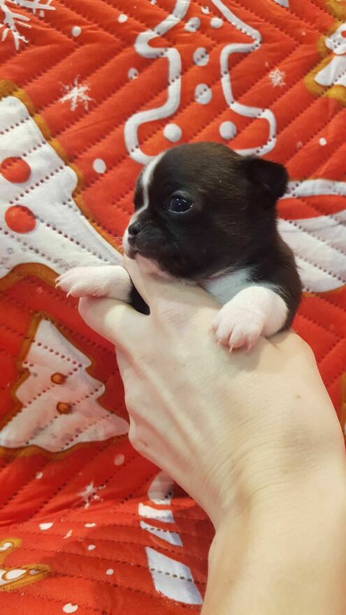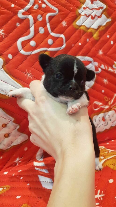 W naszej hodowli dnia 06.12.25r Piesek Chihuahua o umaszczeniu czarno/białym. Piesek o wyjątkowej urodzie. Ma piękną główkę. Rozwija się prawidłowo. Piesek wychowywany jest warunkach domowych z dziećmi. Piesek jest rozmiarów standardowych dla tej rasy. Jesteśmy hodowlą legalną, zarejestrowaną w Polskim Porozumieniu Kynologicznym kupując od Nas szczeniaczka, mają Państwo pewność, że posiadacie pieska rasowego. Hodowla psów rasowych Dom Adi Mino IdA zarejestrowana w Stowarzyszeniu Właścicieli Kotów i Psów Rasowych - SWKiPR Adres: Juliusza Słowackiego 2b, 05-120 Legionowo.Maleństwo zaszczepione, odrobaczone stosownie do wieku.