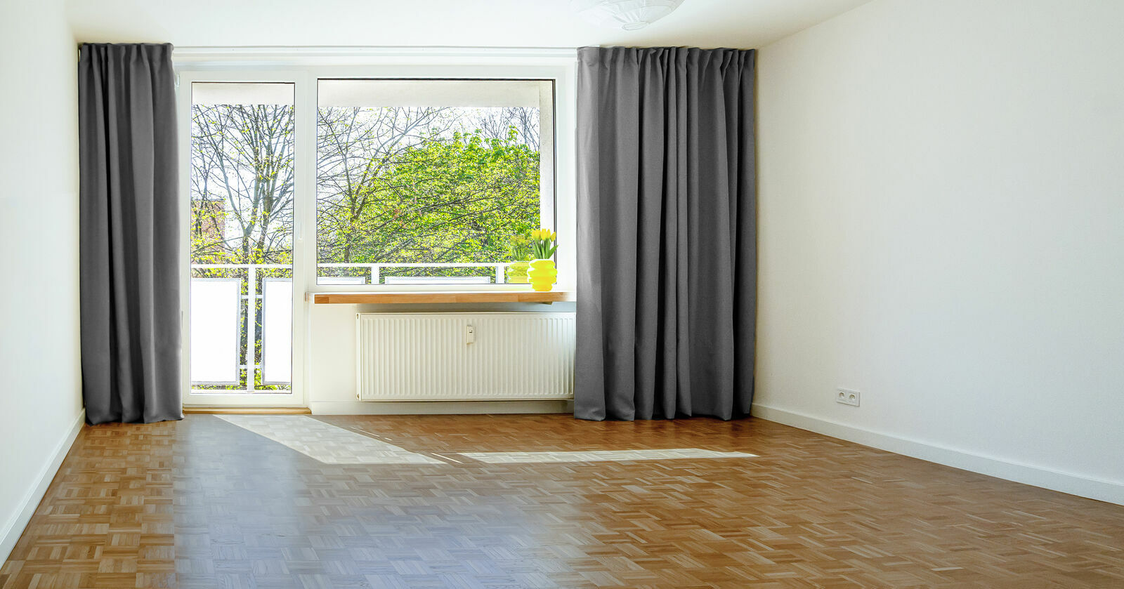 Okna wychodzą na trzy strony świata, co sprawia, że mieszkanie jest bardzo słoneczne przez cały dzień.