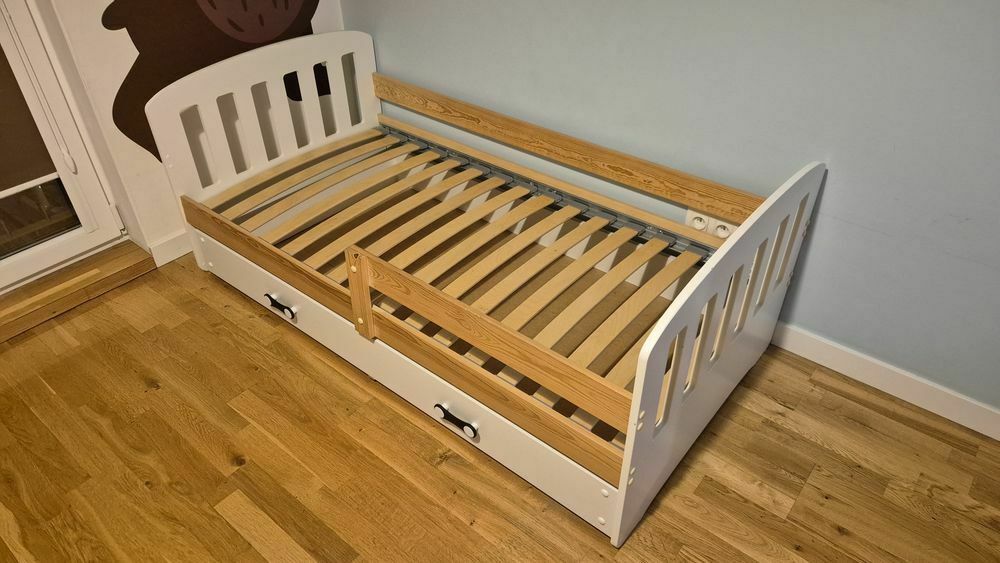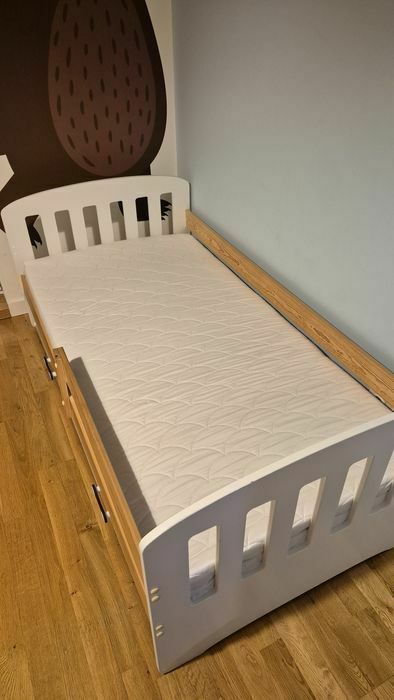 Sprzedam tanio fajne mebelki dziecięce. Łóżko koloru jasnego o wym. 160x80 cm. Dodatkowo dołączam materac piankowo- lateksowy wys. 10 cm - gratis.Stan bardzo dobry. Cena 190 zł.