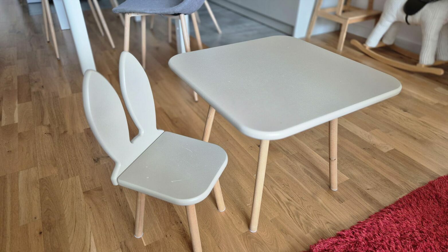 Sprzedam również ciekawy stoliczek o wym. 55x55 cm, wysok. 45 cm. i małe krzesełko. Cena 60 zł za stoliczek i krzesełko.
