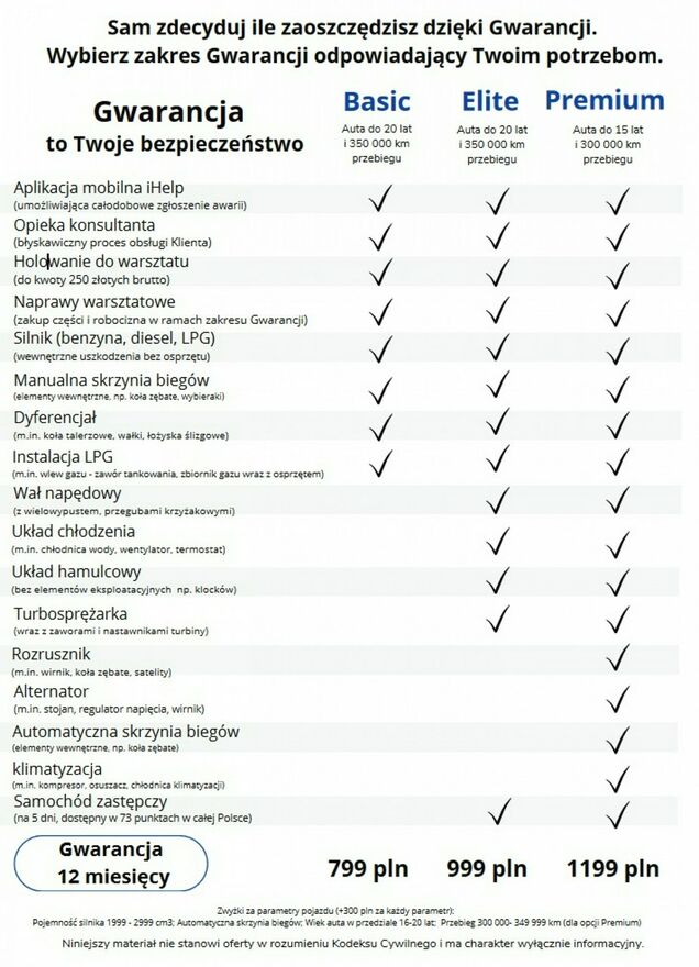 Do pojazdów maksymalnie piętnastoletnich, których przebieg wynosi do 299 tysięcy kilometrów, dajemy możliwość wykupienia dwunastomiesięcznej gwarancji technicznej. Wszystkie nasze samochody mają udokumentowane pochodzenie.