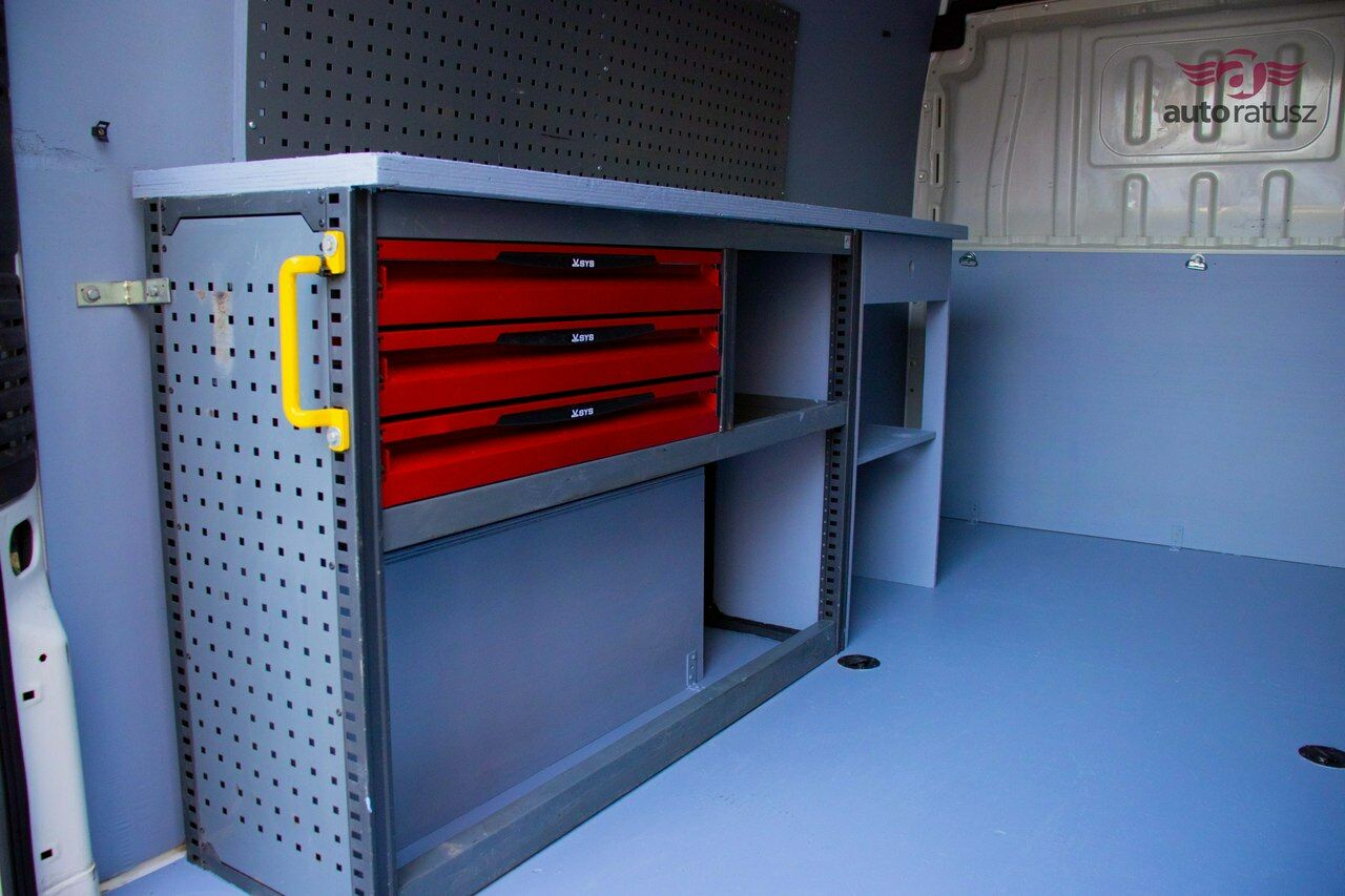 Zabudowa jest solidna, czysta i w pełni funkcjonalna – gotowa do natychmiastowego użytkowania. Dzięki niej Jumper staje się mobilnym warsztatem, przystosowanym do codziennej pracy w terenie.