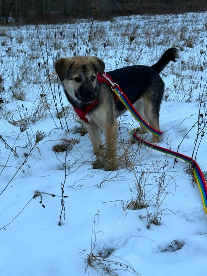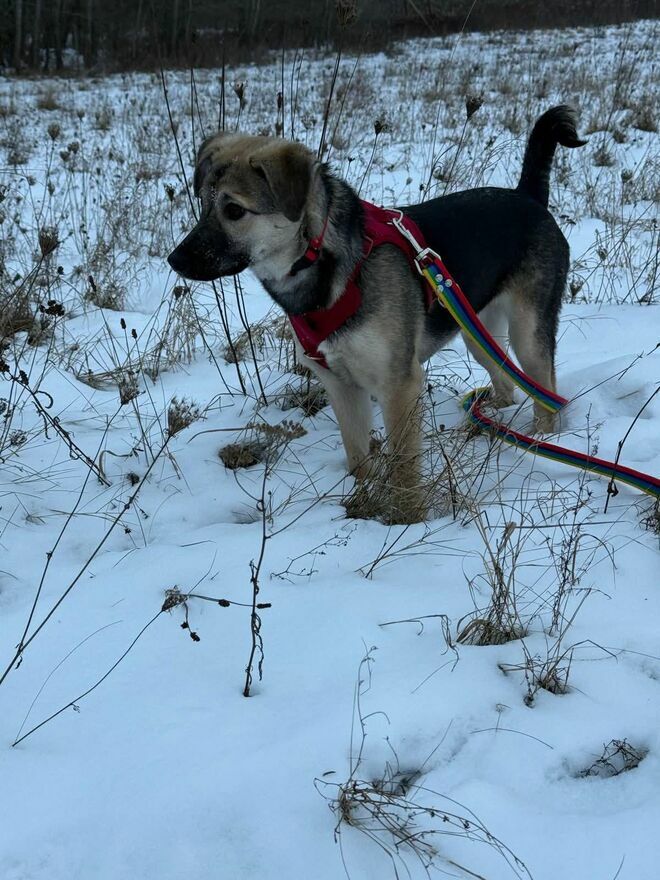 Stokrotka ma około 6 miesięcy, waży ok. 10 kg i raczej będzie średniej wielkości.