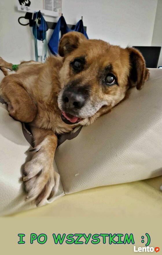 Jestem dużym rudym psem z siwym pyskiem. Trochę już choruję, ale mam wielkie serce i wierzę, że jeszcze zdarzy się cud.