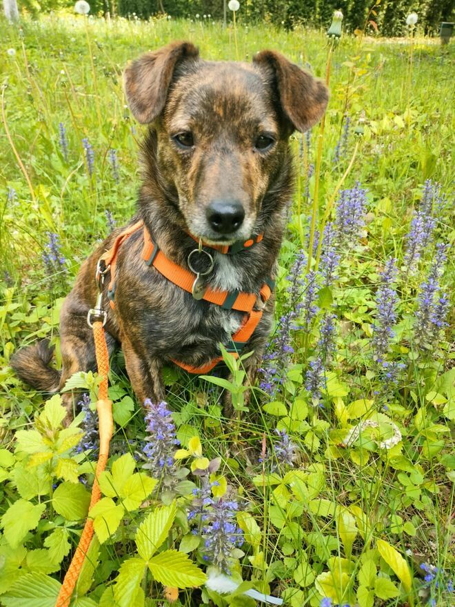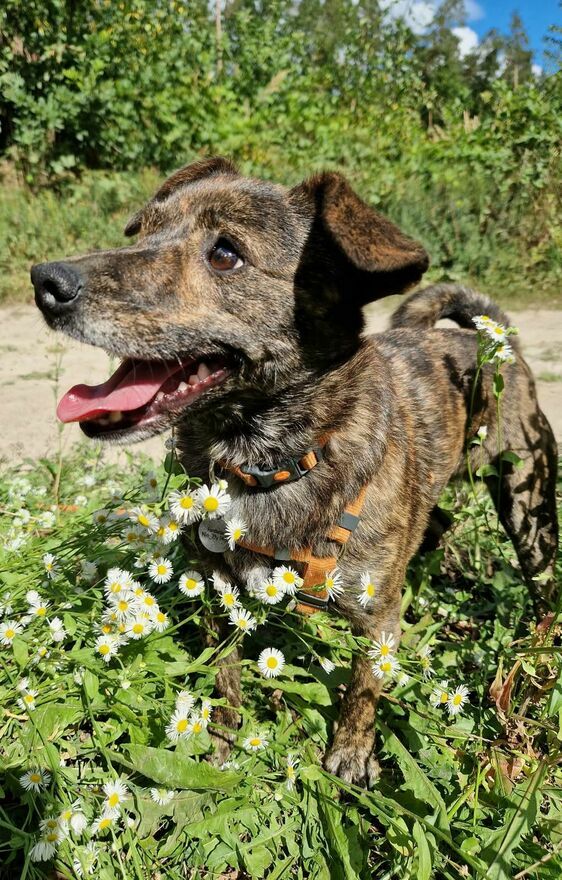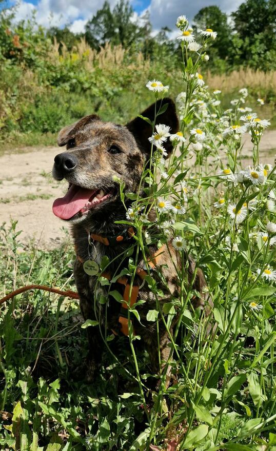 Miesiące pracy z wolontariuszami przyniosły efekty i Cukierek chętnie chodzi na spacery, polubił głaskanie i przytulanie, wita z radością nowych gości.