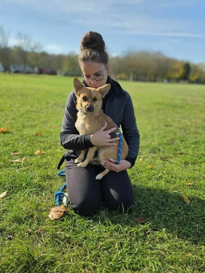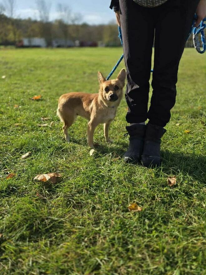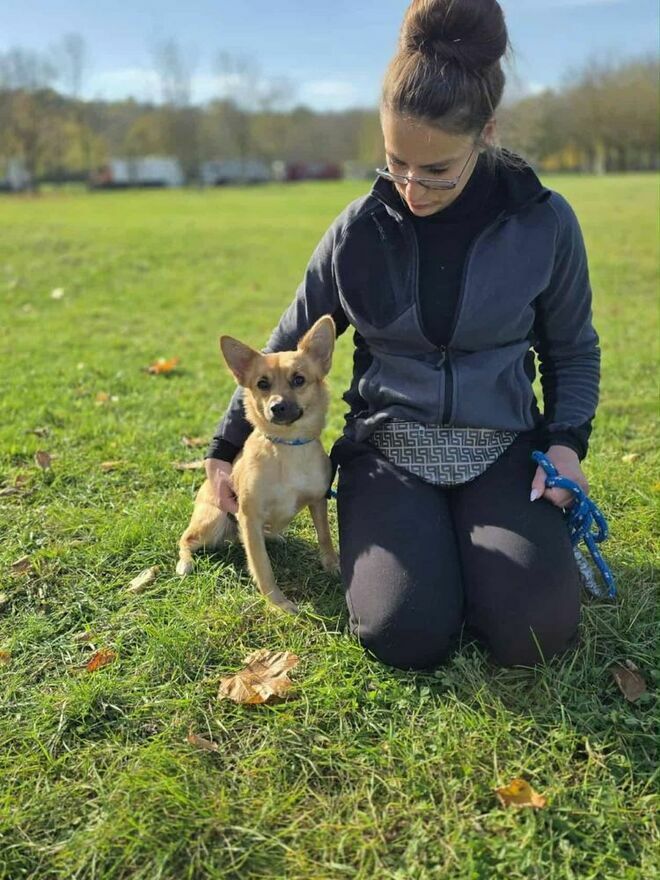 Do mężczyzn bardzo nieufna, do nowych osób niepewna. Zna smycz.