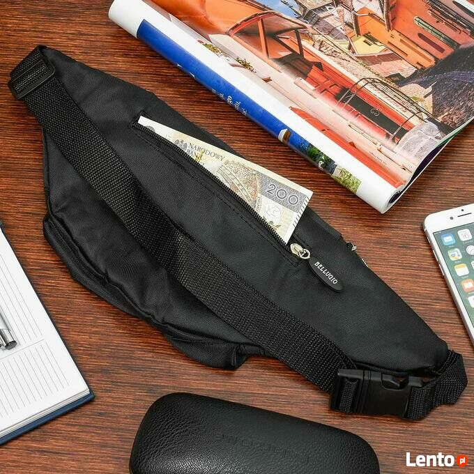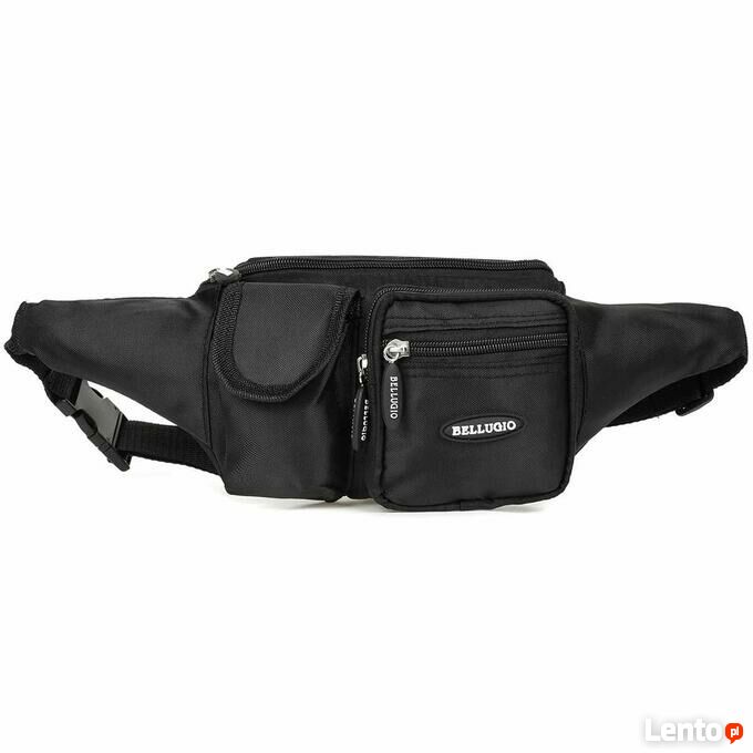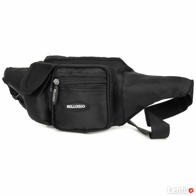 Funkcjonalna, solidna, męska saszetka na biodra, nerka, renomowanej marki BellugioSaszetka wykonana z lekkiego i trwałego nylonu