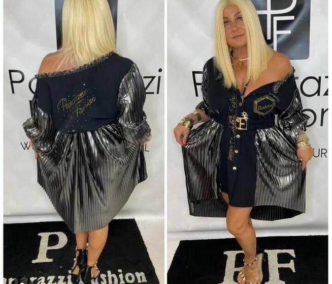 Sukienka dresowa ( bawełniana) łaczona z dżinsem. Pasek w komplecie. Rozmiar uniwersalny Wymiary poznasz klikając ...