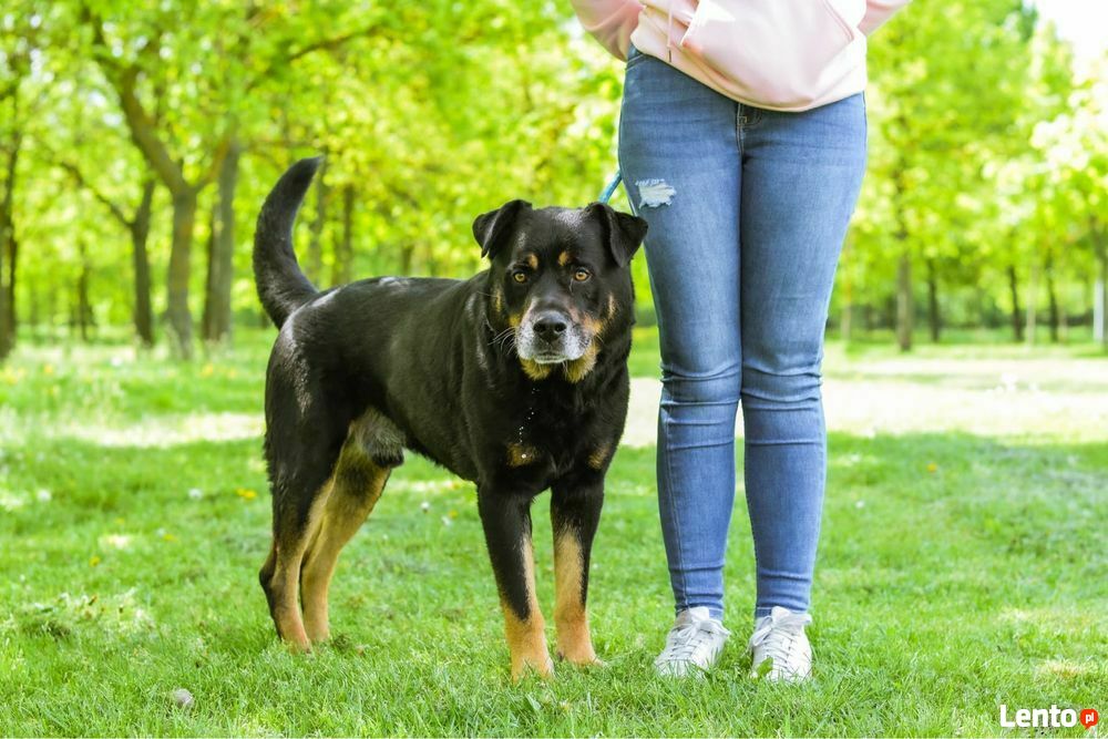 Na spacerach spokojny i delikatny. Zna smycz, zna komendę „siad”, a za smaczki potrafi skakać jak dzieciak!