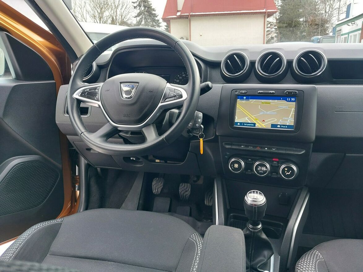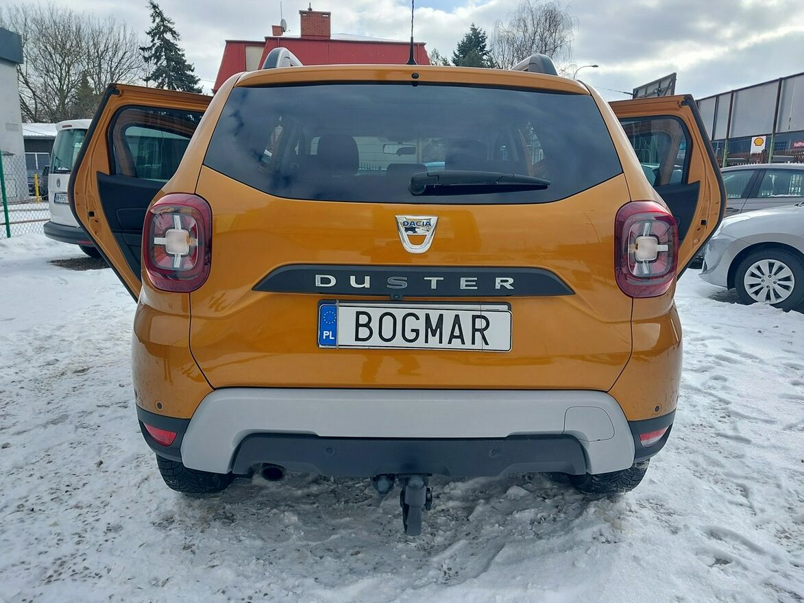 Dacia Duster 2019 r. w bogatej wersji wyposażenia Prestige.Niezawodny, wolnossący silnik benzynowy 1600, 114KM.