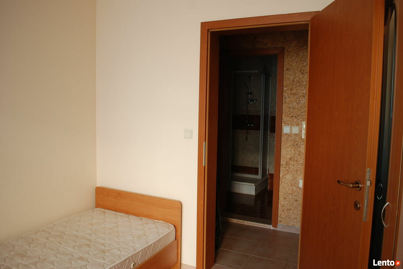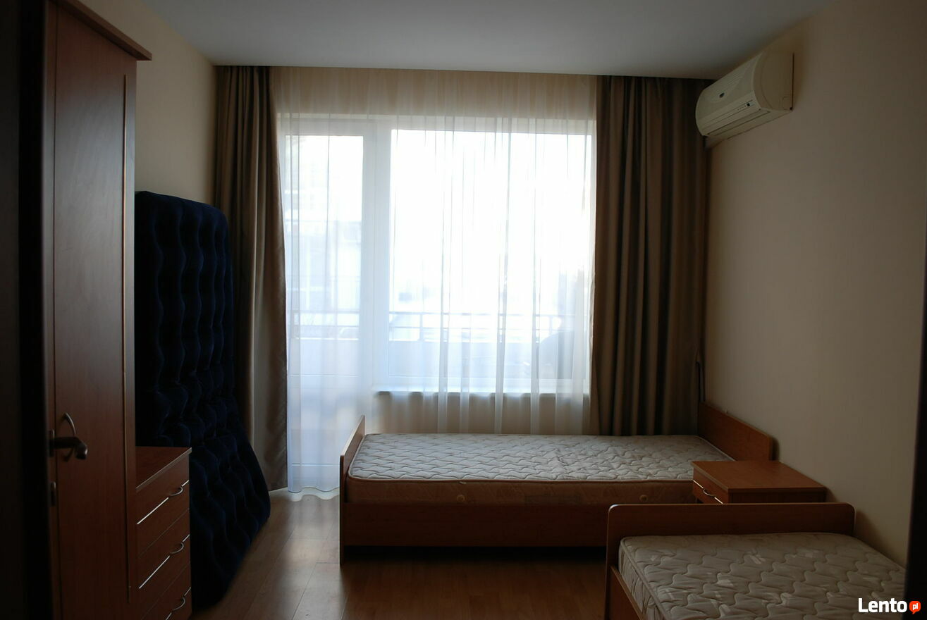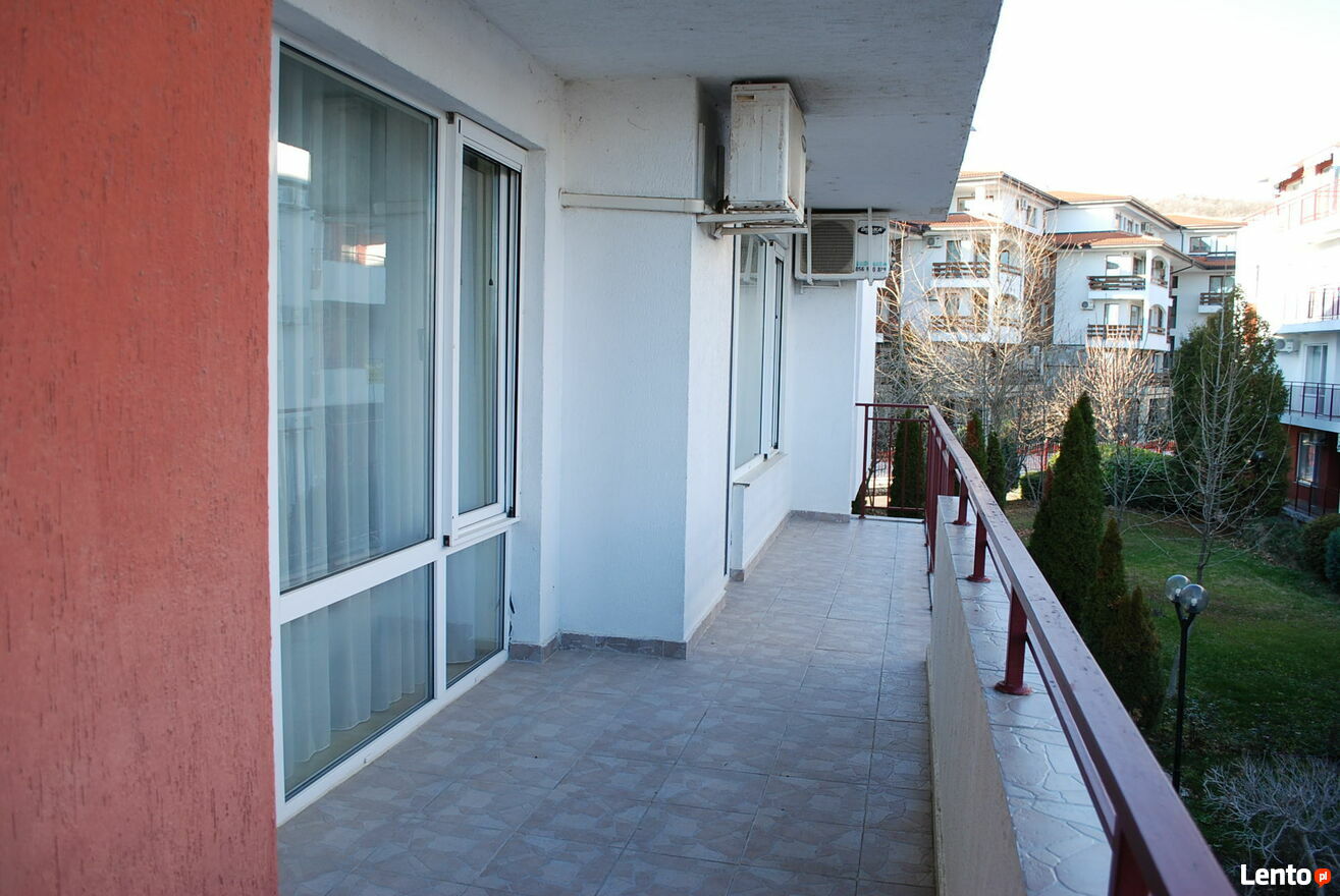 Kompleks Privilege Fort Beach, Deers Resort, plaża Robinson, 10 km od Słonecznego Brzegu i Świętego Własu. Kompleks położony jest bezpośrednio przy plaży. Duży, przestronny, dwupokojowy apartament na drugim piętrze: korytarz, częściowy widok na morze, powierzchnia mieszkalna 98,29 m², dwie sypialnie, dwie łazienki, możliwość dobudowania dodatkowej przestrzeni do przechowywania między łazienką a sypialnią o głębokości 1 metra, wyjście na taras z każdego pokoju, klimatyzacja w każdym pokoju. Apartament w dobrym stanie, bez śladów użytkowania. Widok z tarasu: morze, duży basen, plac zabaw dla dzieci.Kompleks „Privilege Fort Beach” położony jest w pierwszej linii brzegowej, w malowniczej zatoce przy plaży Robinson. Otoczony morzem i lasem sosnowym, połączenie klimatu morskiego i górskiego.