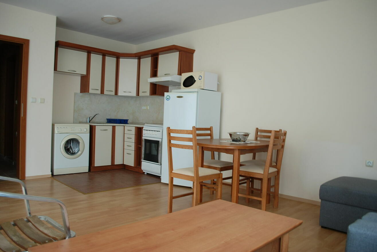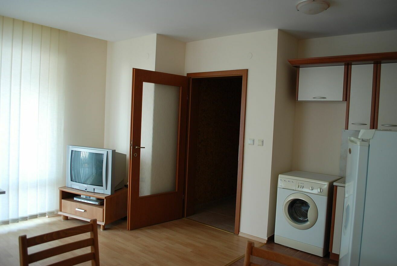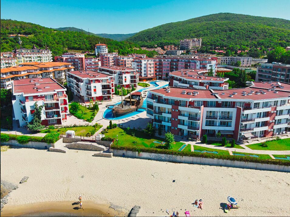 Kompleks Privilege Fort Beach, Deers Resort, plaża Robinson, 10 km od Słonecznego Brzegu i Sweti Włas w Bułgarii. Kompleks położony jest bezpośrednio przy plaży.Duży, przestronny apartament z jedną sypialnią na pierwszym piętrze (mieszkalny): korytarz bez przejść, powierzchnia mieszkalna 75 m², jedna sypialnia, jedna łazienka, wyjście na taras z każdego pokoju, klimatyzacja w każdym pokoju. Zachowany, bez śladów użytkowania. Częściowy widok na morze. Umeblowany.