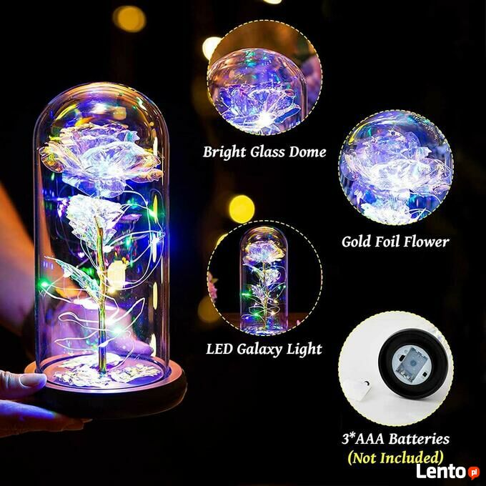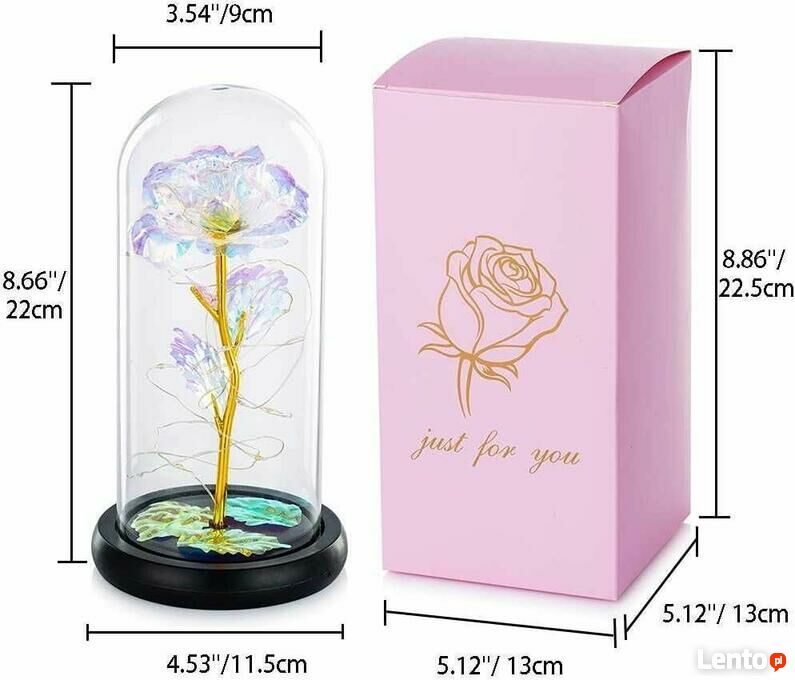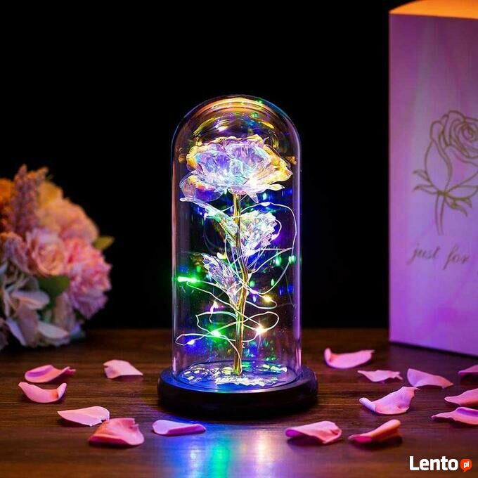 Wieczna róża: Ten kolorowy kwiat róży nigdy nie uschnie i umrze. Wieczny kwiat róży jest idealny i nieskazitelny. Jest tak pełna nieskończonej nadziei i piękna jak tęcza. I przyniesie Ci nieskończoną miłość i piękno.Romantyczne kolorowe lampki: Wystarczy włożyć 3 baterie AAA na spodzie i nacisnąć włącznik. Łańcuch świetlny LED jest wykonany z wysokiej jakości giętego i wodoodpornego drutu miedzianego.