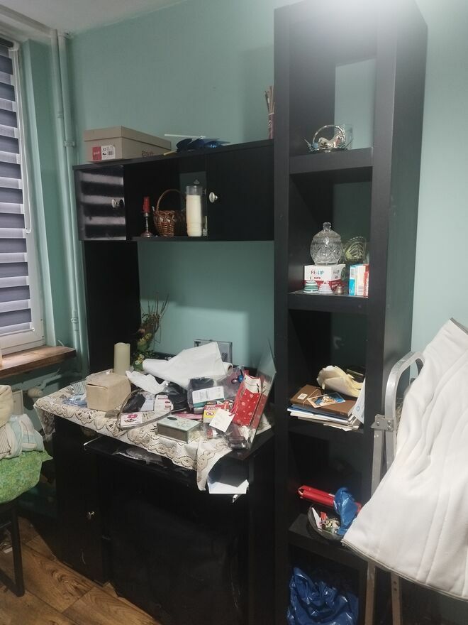 Do sprzedania biurko z nadstawką plus słupek i do tego są jeszcze dwa czarne krzesła i takie zwykłe starsze. Oczywiście bez zawartości tych rzeczy na wierzchu ale są do usunięcia.Odbiór Targówek dawne Bródno
