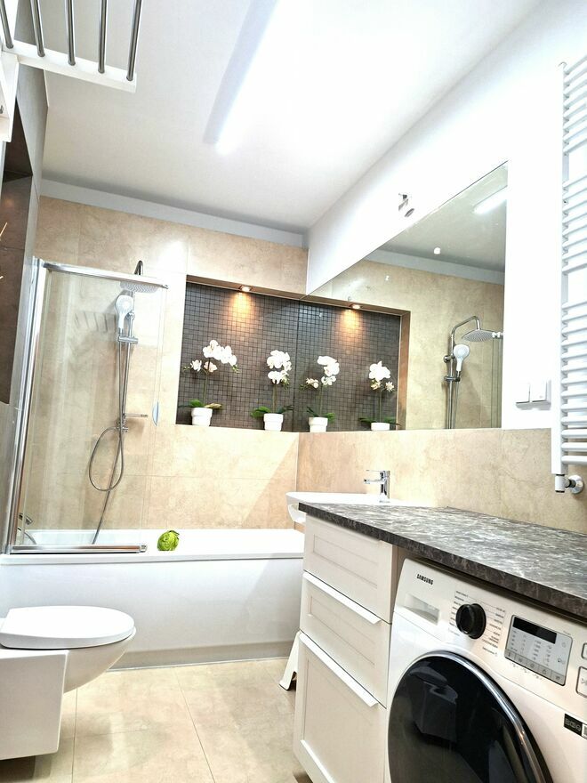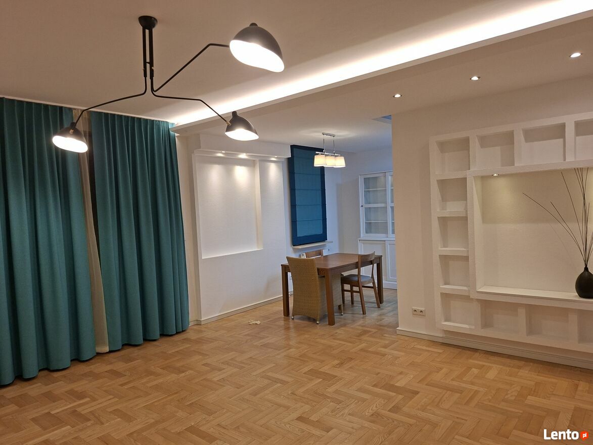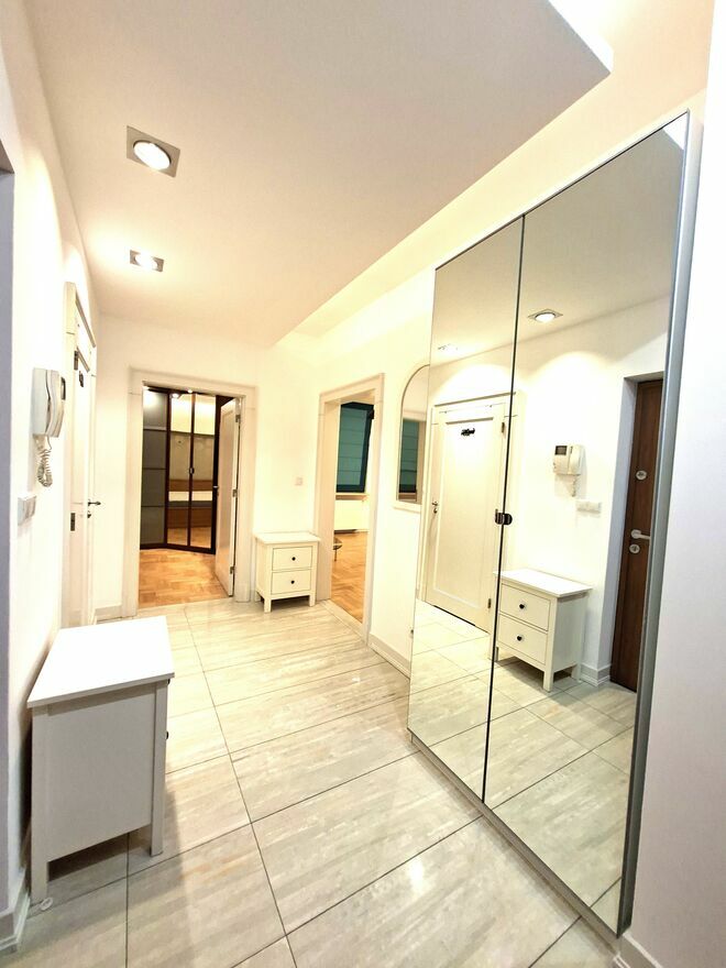 W jego skład skład wchodzi kuchnia (13,1 mkw), pokój dzienny (24,5 mkw), sypialnia (16,4 mkw), łazienka (6 mkw), przedpokój (7,8 mkw), taras z ogródkiem (31,6 mkw), miejsce parkingowe w garażu podziemnym. Może być przekazany umeblowany - ale jest możliwość przekazania bez mebli. Okno z sypialni wychodzi na wewnętrzne patio , okno balkonowe z salonu wraz z tarasem i ogródkiem wychodzi na park. Okna na stronę wschodnią oraz zachodnio-północną. Wygodne miejsce postojowe w garażu podziemnym. Bardzo spokojna i bezpieczna okolica, mnóstwo zieleni, piękne parki, tereny rekreacyjne i ścieżki rowerowe, pełna infrastruktura handlowo - usługowa. Bardzo dobra komunikacja z szybkim dojazdem do ścisłego centrum miasta, w pobliżu liczne przystanki autobusowe oraz dworzec miejskiej kolejki POWIŚLE. Idealne miejsce dla osób ceniących sobie najwyższy standard zamieszkania w centrum miasta, jednocześnie wśród zieleni i ciszy.