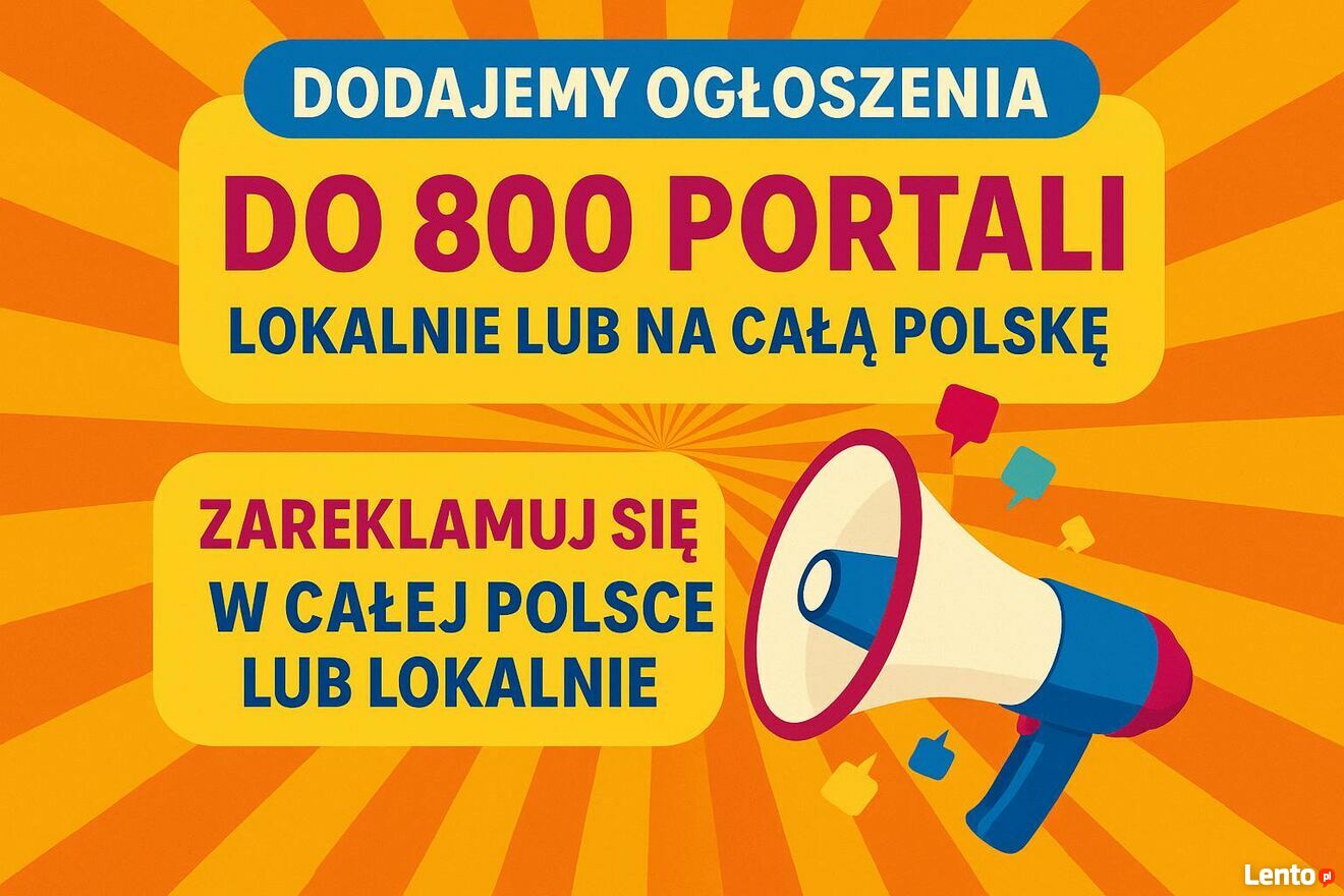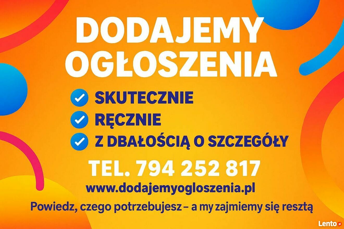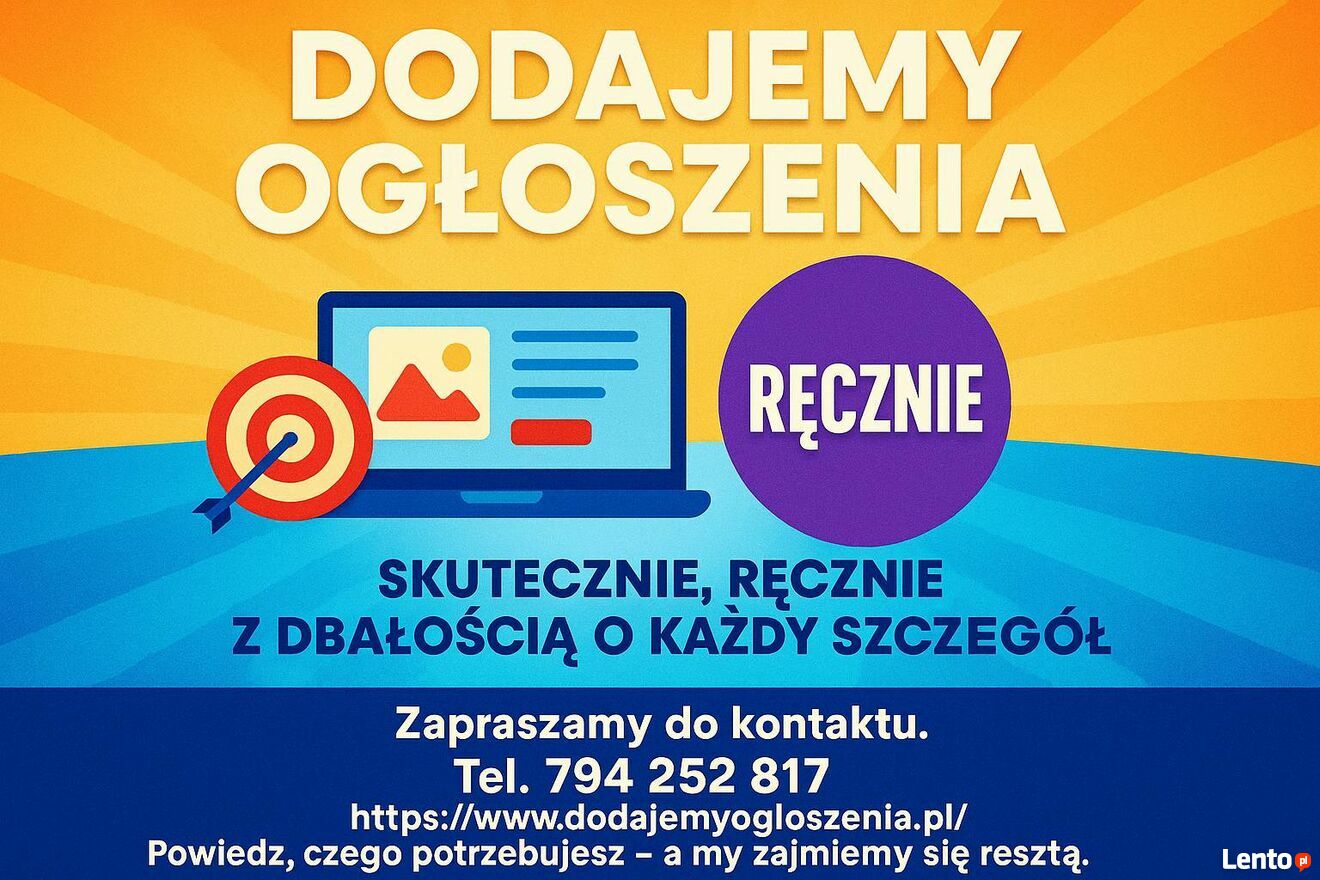 Szukasz skutecznego sposobu na dotarcie z ogłoszeniem do większej liczby osób? A może zależy Ci na tym, by Twoja oferta pojawiła się w konkretnym województwie lub regionie? Dobrze trafiłeś.Zajmujemy się ręcznym dodawaniem ogłoszeń do różnych portali - zarówno ogólnopolskich, jak i lokalnych. Działamy elastycznie: możesz wybrać zasięg ogólnopolski albo wskazać konkretne województwa, które Cię interesują. My zajmiemy się całą resztą.