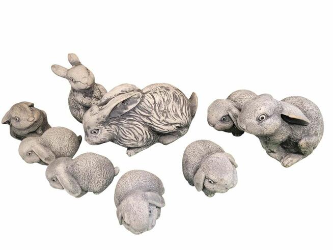 CENA ZA KOMPLET 9 SZTUK Króliczki Cena za komplet 90 zł Kolor: popielaty poprzecierany Wymiary: od 12 do 25 cm Figurki ...