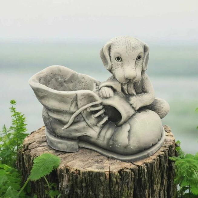 Figurka gipsowa Piesek w bucie – cena za sztukę Elegancka, ręcznie wykonana figurka gipsowa przedstawiająca uroczego ...