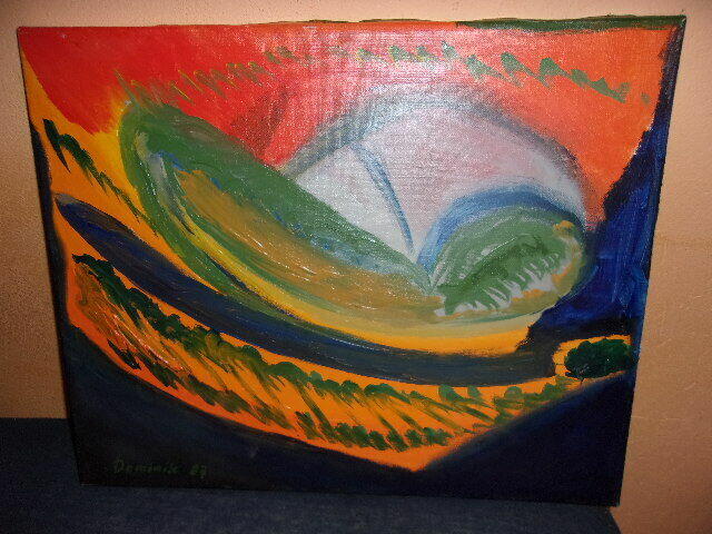 Dominik Tadeusz - abstrakcja - olej płótno - 59 na 40 cm . Bez ramy ,, sygnowany " Dominik 87 " . Wartość aukcyjna ok ...