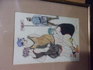 Wykonany ręcznie, niepowtarzalny obrazek w abstrakcyjnym stylu. Grafika na grubym papierze. Praca jest naklejony na ...