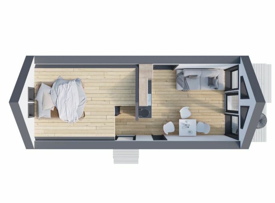 Dom modułowy 38 m² z tarasem | 1 sypialnia | 60 800 € | 10 l