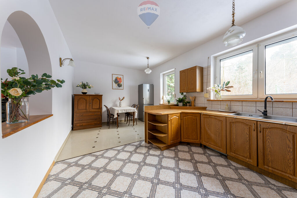 Obszerna kuchnia na parterze to prawdziwe królestwo każdej pani domu