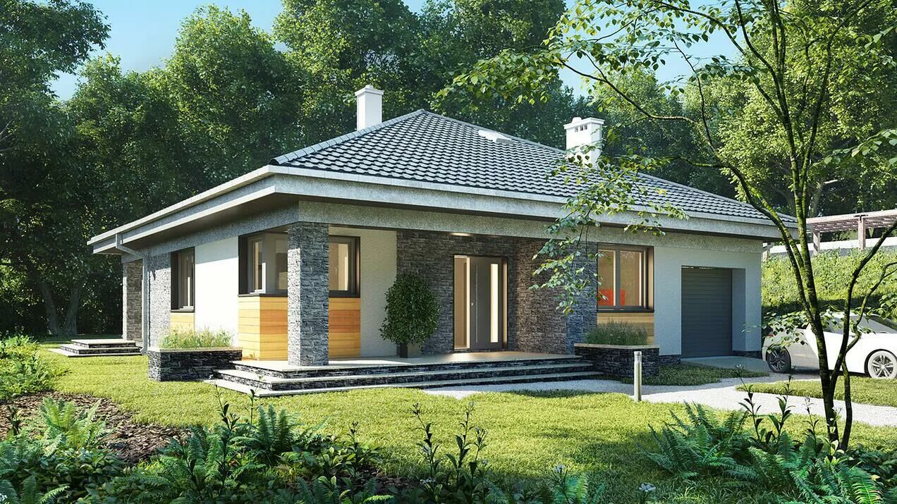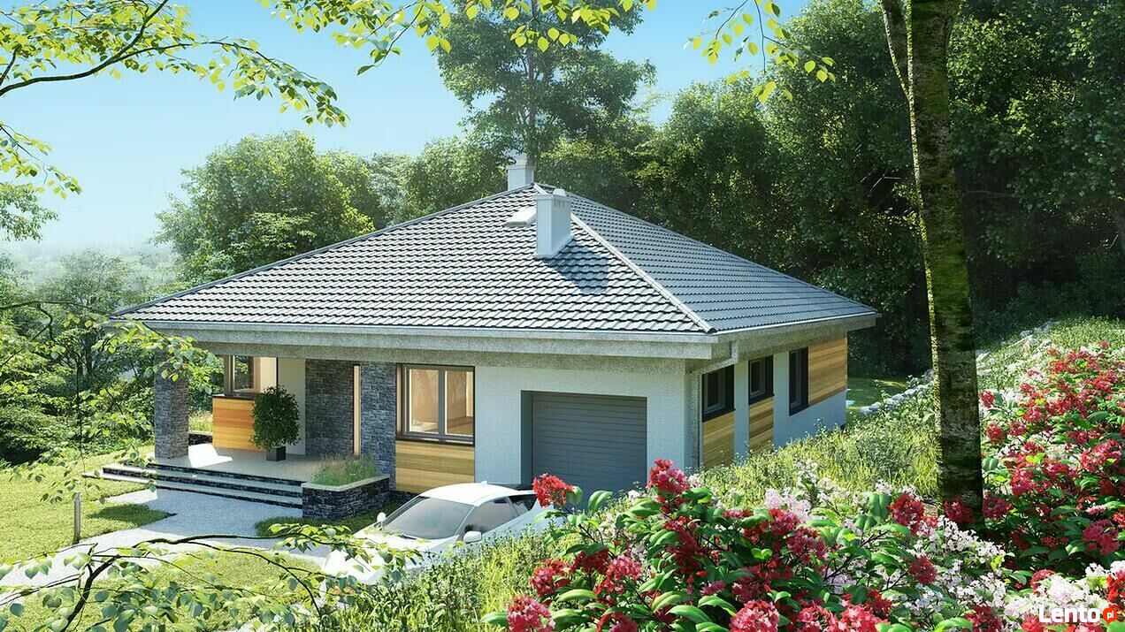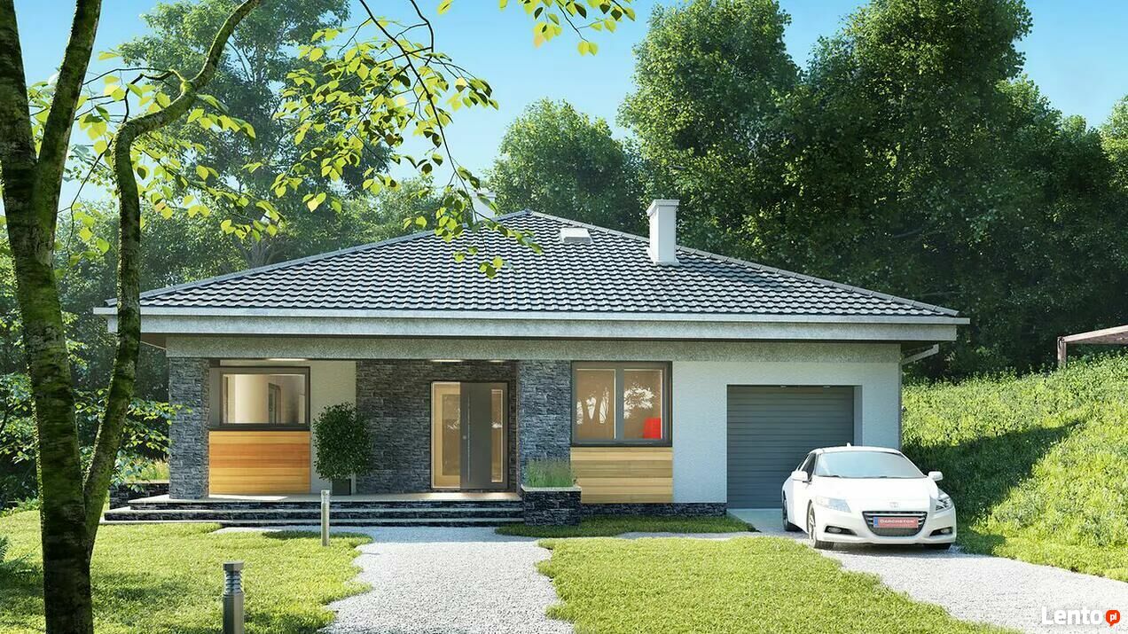 Dom prefabrykowany B 131 : to nowoczesny dom parterowy, przeznaczony dla 4-5-osobowej rodziny. W części ogólnodostępnej zlokalizowano pokój dzienny połączony z jadalnią i kuchnią. Część prywatną tworzą trzy sypialnie oraz łazienka i wc. Pomieszczenie gospodarcze umieszczone tuż przy wejściu dostępne jest również z kuchni.Oferuję wykonanie:
