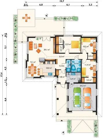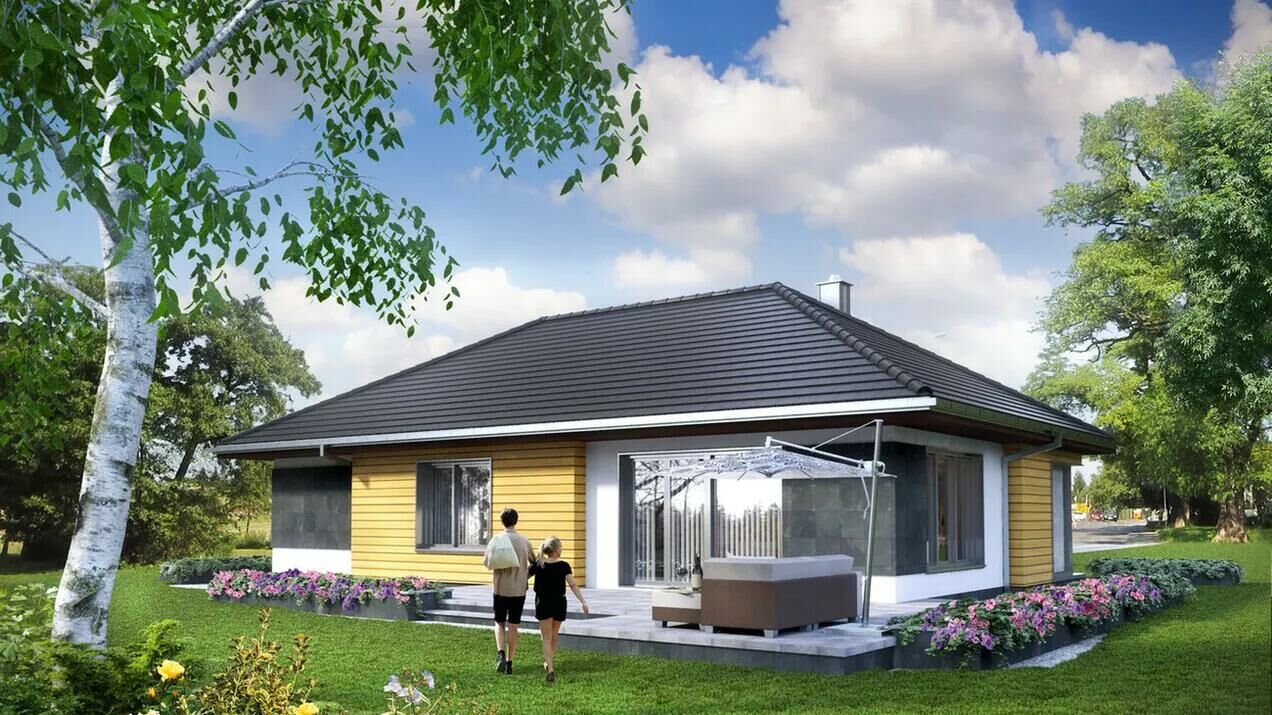 Dom Prefabrykowany Teresa - jest doskonałym rozwiązaniem dla osób posiadających średniej szerokości działkę. Dom charakteryzuje się bryłą w kształcie litery L, co pozwala na łatwy podział na strefy. W tym projekcie kalenica usytuowana jest prostopadle do drogi, co często określane jest w planie zagospodarowania przestrzennego. Projekt został stworzony z myślą o działkach pozwalających na usytuowanie domu w zabudowie wolnostojącej. W projekcie uwzględniono garaż dwustanowiskowy wysunięty do przodu. Jest to również doskonała propozycja dla osób szukających domu z dachem kopertowym, który należy do najsolidniejszych konstrukcji dachowych. Projekt Teresa - to dom parterowy, co sprawia, że komunikacja między pomieszczeniami jest bardzo wygodna.Oferuję wykonanie: