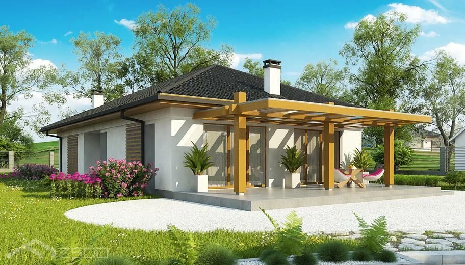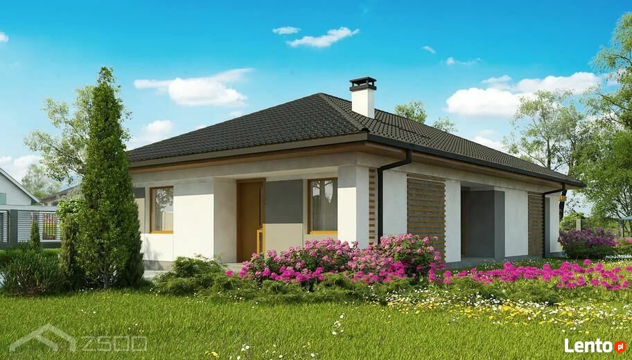 Dom prefabrykowany Z328 D to nowoczesny parterowy dom z dachem kopertowym. Idealnie nadaje się na wąska działkę.Oferuję wykonanie: