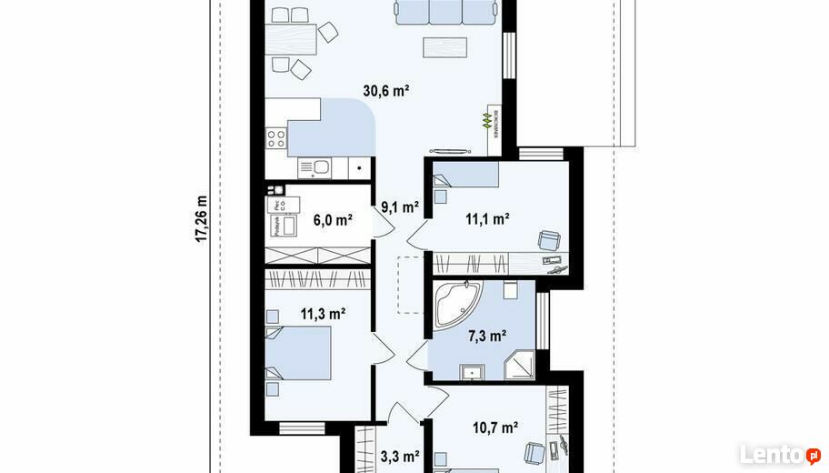 Dom prefabrykowany Z 366 D został zaprojektowany specjalnie z myślą o wąskiej działce do szerokości 16m. Architekci, dzięki odpowiedniemu rozplanowaniu układu funkcjonalnego rozmieścili w budynku wszystkie potrzebne pomieszczenia bez odczucia, że czegoś brakuje. Trzy nieduże, ustawne pokoje o powierzchni przekraczającej 10 m2 mogą zostać przeznaczone na pokoje dziecięce, gabinety pracy a także garderobę, jeśli takowa byłaby potrzebna. Przestronny, doświetlony z dwóch stron salon połączono z gustownie urządzoną jadalnią. Posiadają one wyjście na zadaszony taras, gdzie będziemy mogli spędzać czas wspólnie z rodziną i przyjaciółmi, nawet jeśli urządzanie przyjęć nie jest naszą mocną stroną.Oferuję wykonanie: