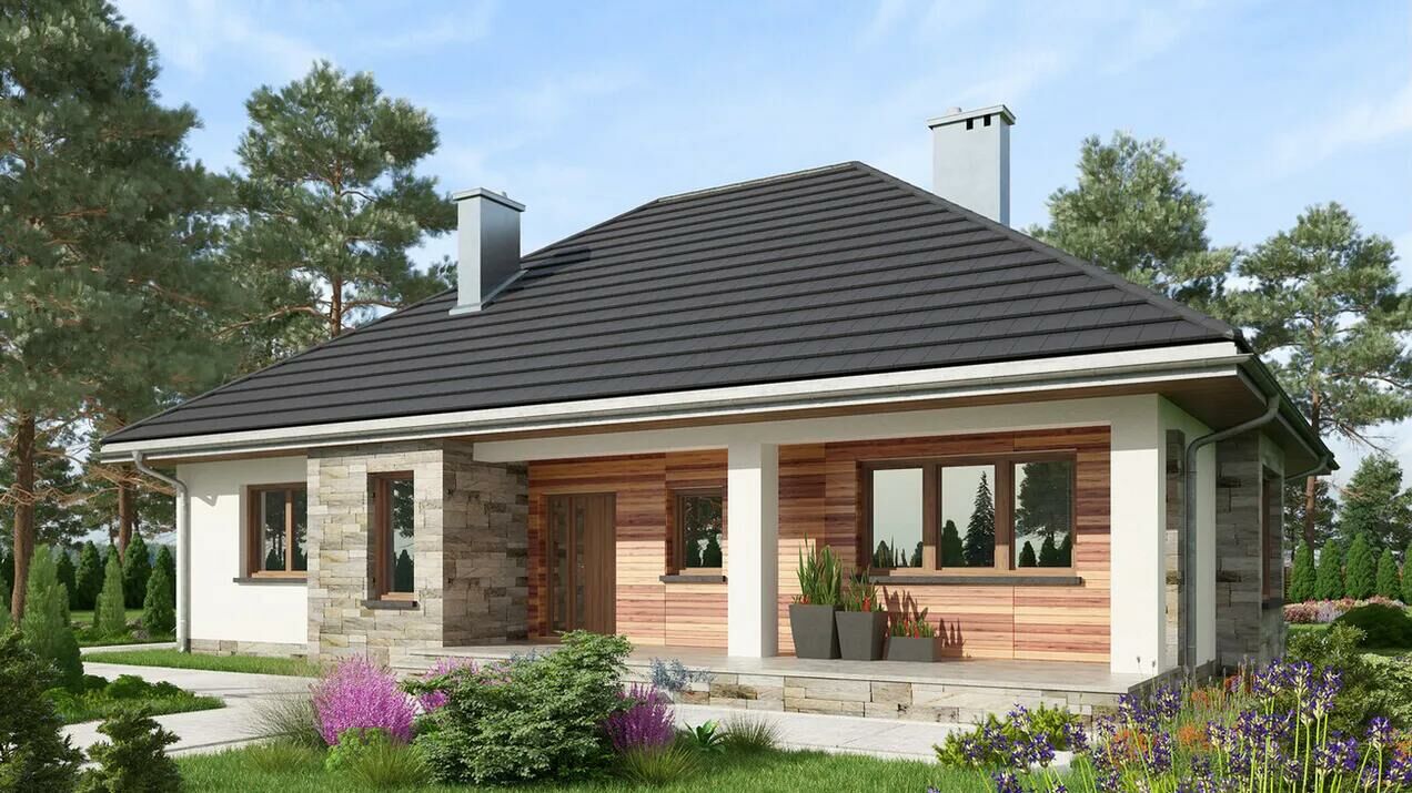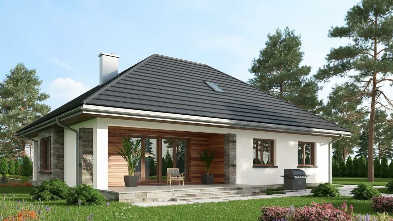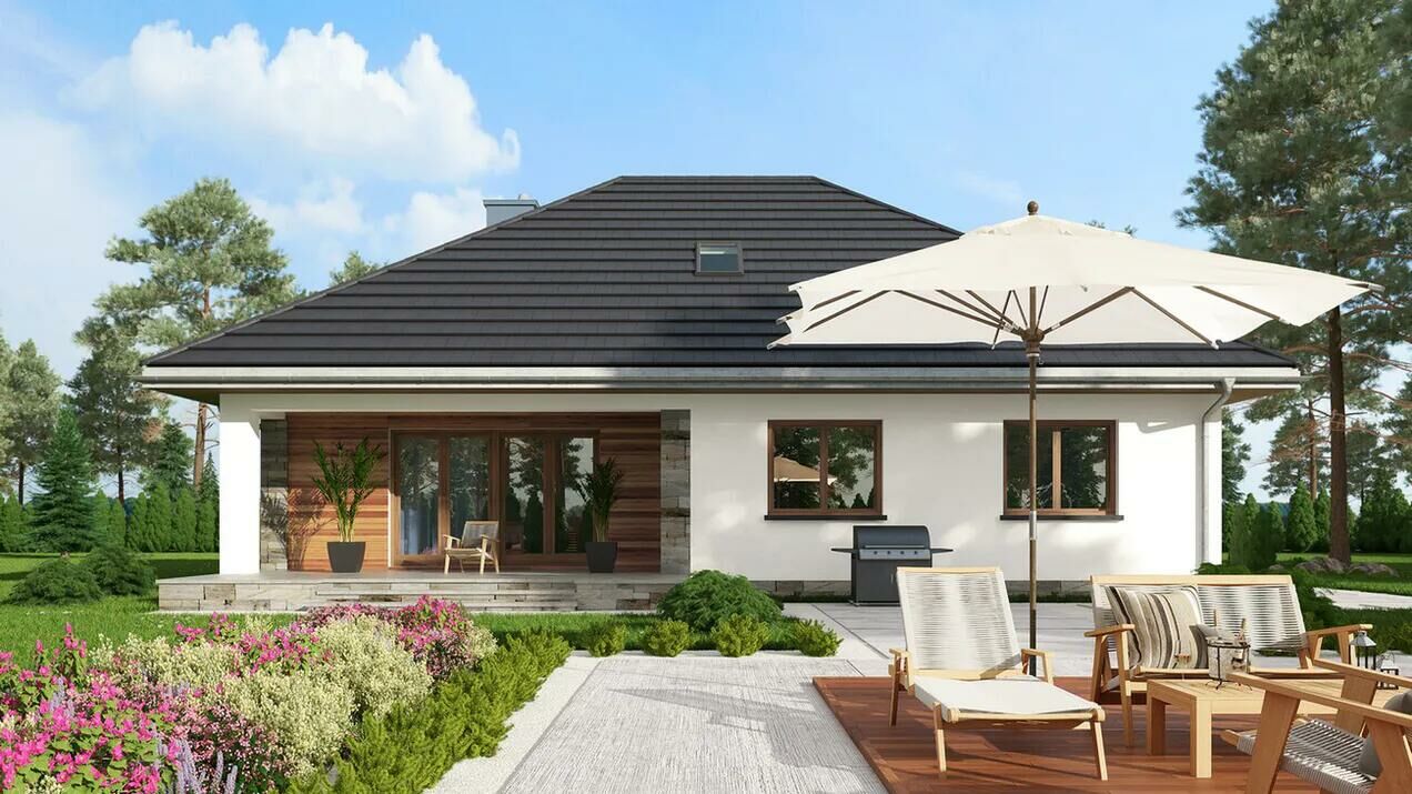 Dom Prefabrykowany Regina Rex - to ciekawa propozycja dla osób posiadających średniej szerokości działkę. Bryła budynku posiada formę typową, co znacznie ułatwia późniejszą aranżację wnętrza. Przeszklenia przewidziane w wykuszu nadadzą wnętrzu większej przestronności. Projekt należy do kategorii domów z kalenicą usytuowaną równolegle do drogi, co jest istotne ze względu na wymagania określone w warunkach zabudowy. Dom został zaprojektowany z myślą o zabudowie wolnostojącej. Jest to również ciekawa propozycja dla osób szukających domu z dachem kopertowym, który doskonale się prezentuje. Regina Rex - to dom parterowy, co sprawia, że komunikacja między pomieszczeniami jest bardzo komfortowa.Oferuję wykonanie: