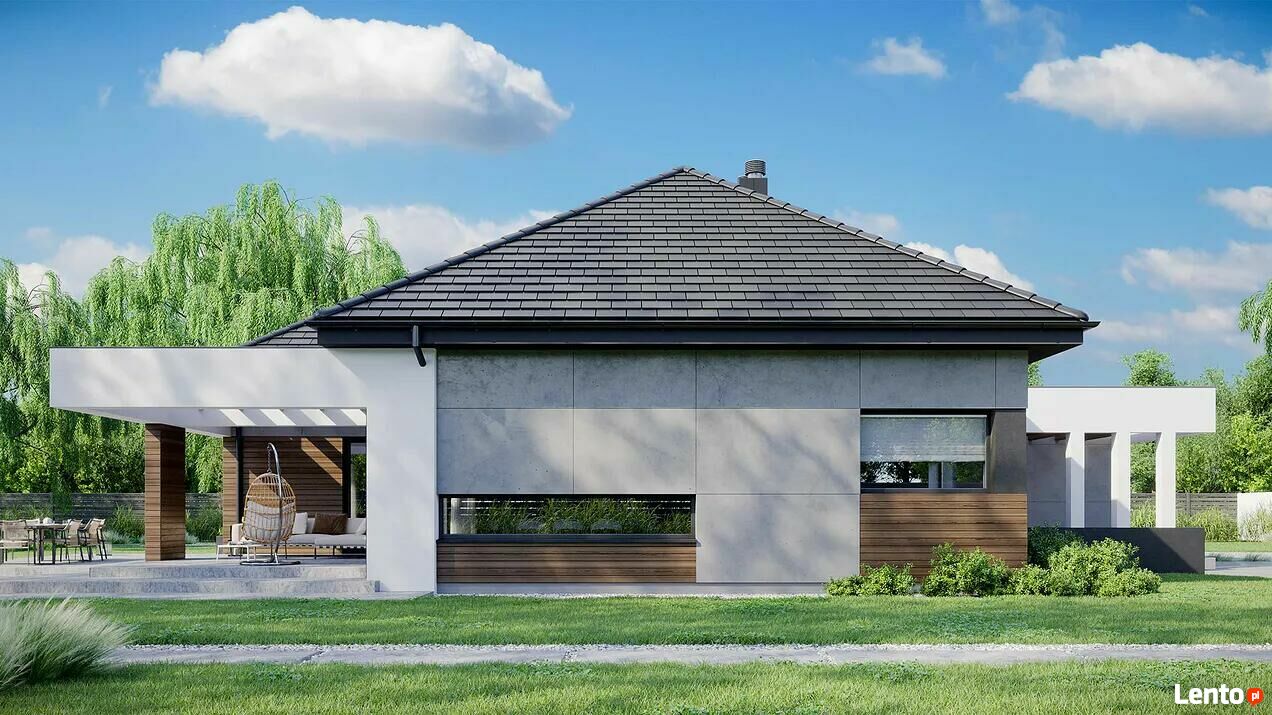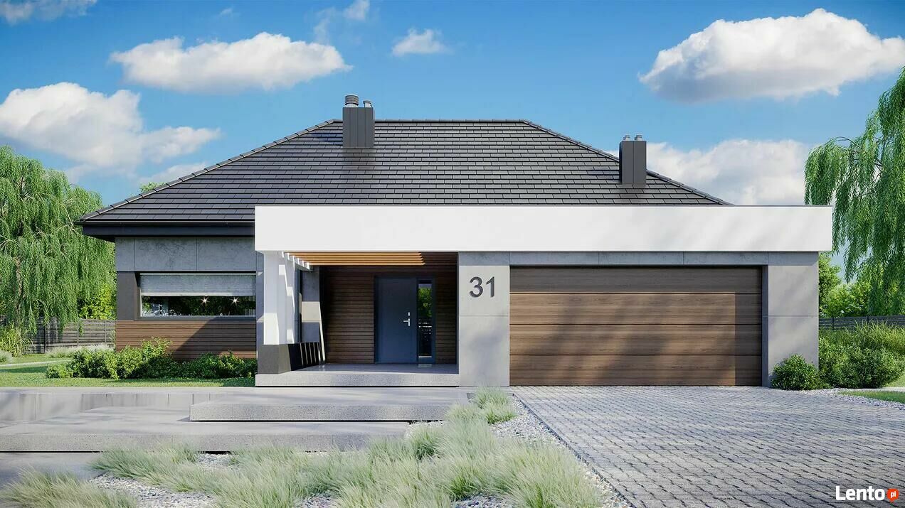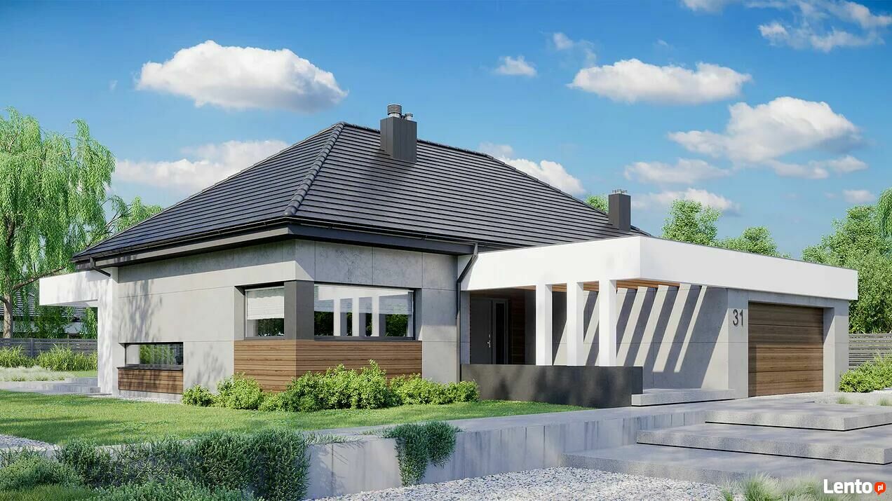 Dom Prefabrykowany HomeKoncept-31 jest doskonałym budynkiem na średniej szerokości działkę. Dom posiada typową bryłę, więc będzie się dobrze prezentował niezależnie od otoczenia. Projekt należy do kategorii domów z kalenicą usytuowaną równolegle do drogi i jest przeznaczony do zabudowy wolnostojącej. W projekcie uwzględniono garaż dwustanowiskowy wysunięty do przodu. Bryła budynku przykryta jest dachem wielospadowym, który nowocześnie się prezentuje, dom doskonale sprawdzi się w przypadku, gdy jego front znajduje się od strony południowej. Dom HomeKoncept-31 to dom parterowy, co sprawia, że komunikacja między pomieszczeniami jest bardzo wygodna. Autor projektu przewidział w nim ciekawie prezentującą się strefę dzienną, dzięki otwartej kuchni podczas przygotowywania posiłków mamy kontakt z domownikami przebywającymi w salonie, co sprzyja integracji rodziny. Dodatkowo przydatnym pomieszczeniem jest pojemna spiżarka, połączenie jadalni z salonem to doskonałe rozwiązanie dla osób, lubiących organizować przyjęcia. W domu przewidziano zarówno komfortową łazienkę, jak i osobną toaletę, co jest szczególnie przydatne przy większej liczbie domowników. W domu znajdują się trzy wygodne sypialnie, co sprawia iż jest on doskonałym wyborem dla 2-4 osobowej rodziny. Niewątpliwą zaletą projektu są przewidziane w nim funkcjonalne garderoby, w projekcie nie mogło również zabraknąć miejsca na wyjątkowo przydatne pomieszczenie gospodarcze.Oferuję wykonanie: