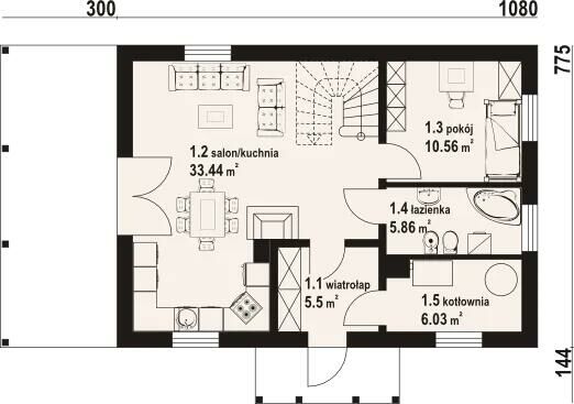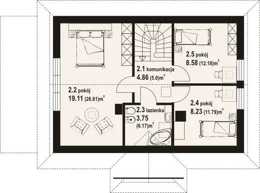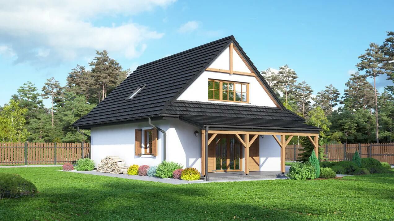 Dom Prefabrykowany Zawoja MK 31 to przytulny dom z poddaszem. W domu znajduje się duży salon z aneksem kuchennym, kominkiem, schodami na poddasze i wyjściem na zadaszony taras. Ponadto na parterze jest usytuowany pokój, łazienka, wiatrołap i kotłownia. Na poddaszu znajdują się trzy pokoje, łazienka i komunikacja. Zwarta bryła budynku i dach dwuspadowy sprzyjają szybkiej i taniej budowie i niskim kosztom eksploatacji.Oferuję wykonanie: