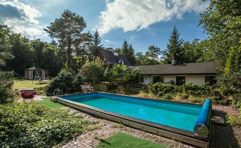 PRAWDZIWIE ARTYSTYCZNA POSIADŁOŚĆ W LESIE W GRANICACH MIASTANa sprzedaż unikatowa rezydencja położona w sercu lasu, w Henrykowie na Białołęce zaledwie 12 km od Pałacu Kultury i Nauki. Dojazd ze Śródmieścia zajmuje około 15 minut, co czyni to miejsce prawdziwą oazą spokoju w granicach Warszawy. Posiadłość otoczona jest wysokim murem, zapewniającym pełną prywatność i harmonijne połączenie z naturą. Całość usytuowana jest na pięknie zagospodarowanej działce z ogrodem, basenem oraz dodatkowym budynkiem z pracownią i apartamentem gościnnym.