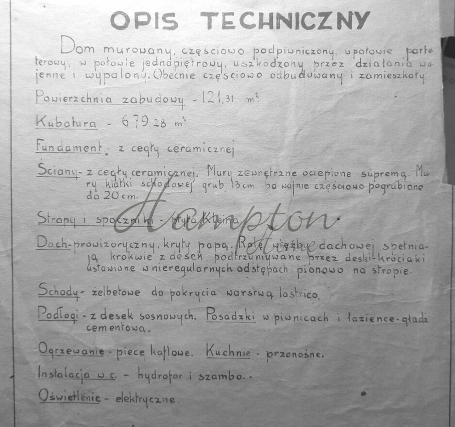 Budowany z cegły , Ogrzewanie gazowe, Okna drewniane , Dach skośny.
