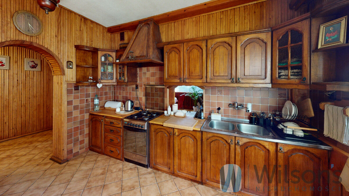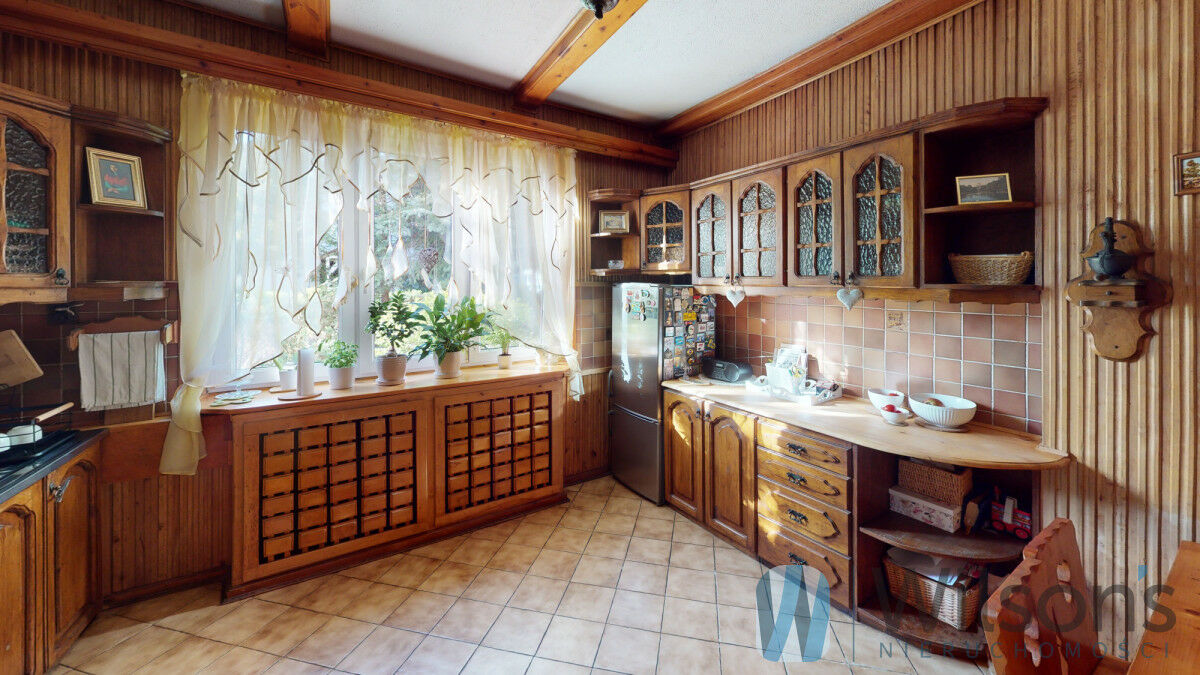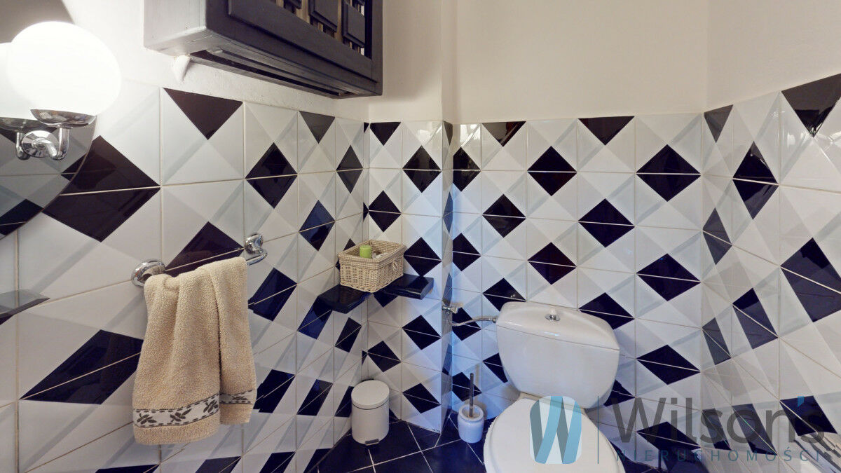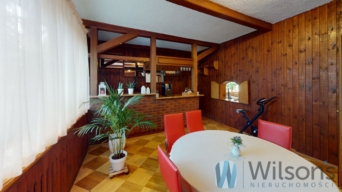 Mamy tutaj do dyspozycji duży salon z klimatycznym kominkiem i klasycznym meksykańskim barkiem oraz wydzieloną częścią jadalną. Oddzielną kuchnię z oknem. Sześć pokoi o dowolnym przeznaczeniu (od gabinetów po sypialnie).