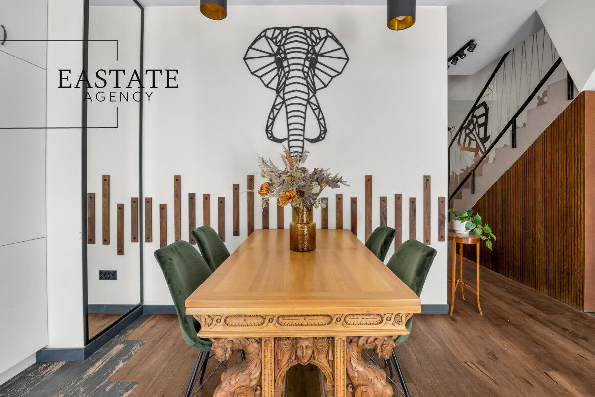 Oferuję do wynajęcia przestronny i komfortowy dom w zabudowie szeregowej, położony na zamkniętym, kameralnym osiedlu, zlokalizowany na warszawskim Targówku przy ul. Oliwskiej.Dom wyróżnia się nie tylko funkcjonalnym układem i dużą liczbą pomieszczeń, ale przede wszystkim wyrazistym charakterem wnętrz, wysokim standardem wykończenia oraz starannie dobranym wyposażeniem.