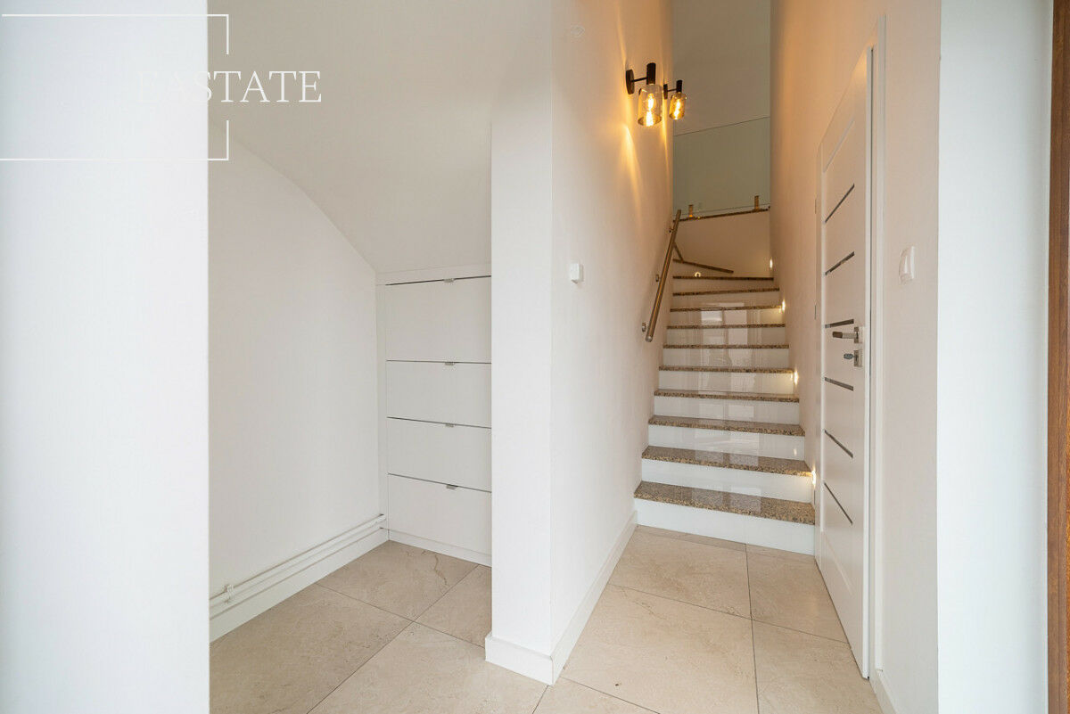 Oferuje do wynajęcia 4-pokojowy segment o pow. 106 m2 z własnym wejściem i prywatną klatką schodową oraz balkonem usytuowanym na osiedlu zamkniętym przy ul. Łasaka na warszawskim Wawrze.Nieruchomość składa się z: