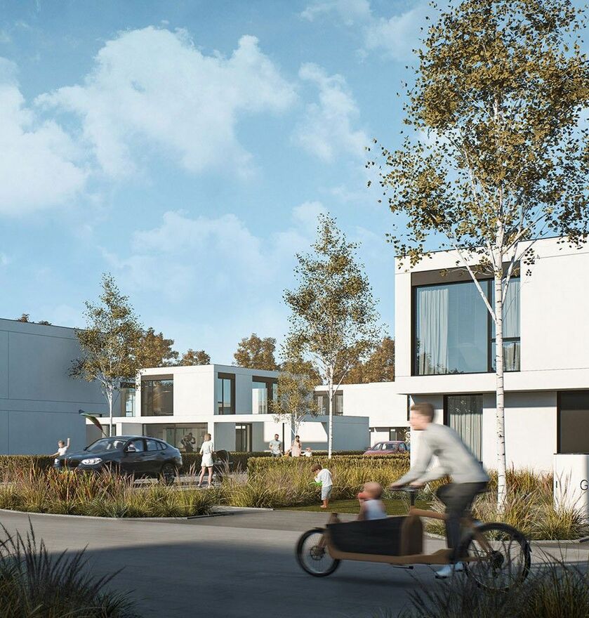 - Każdy dom posiada ogród i taras, które tworzą komfortową przestrzeń do wypoczynku na zewnątrz.