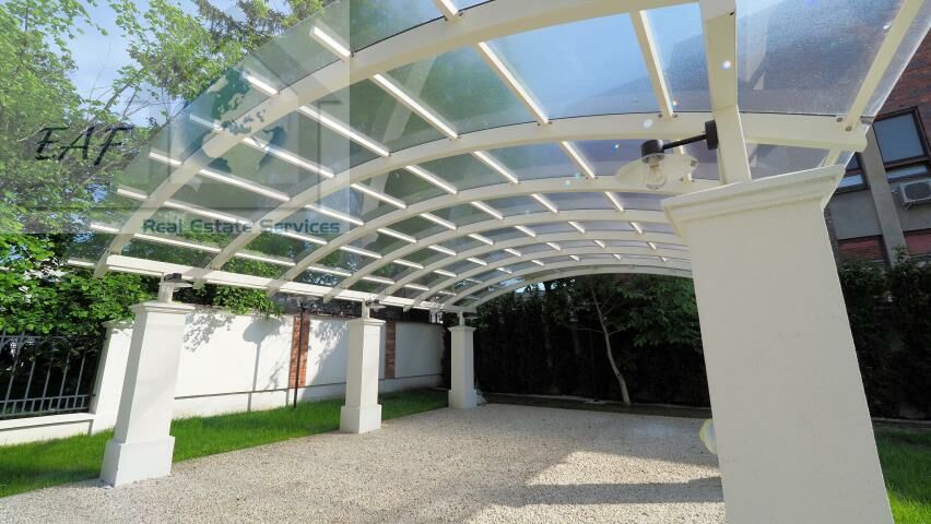 Monitoring, alarm, miejsce postojowe - wiata przy domu na dwa samochody.