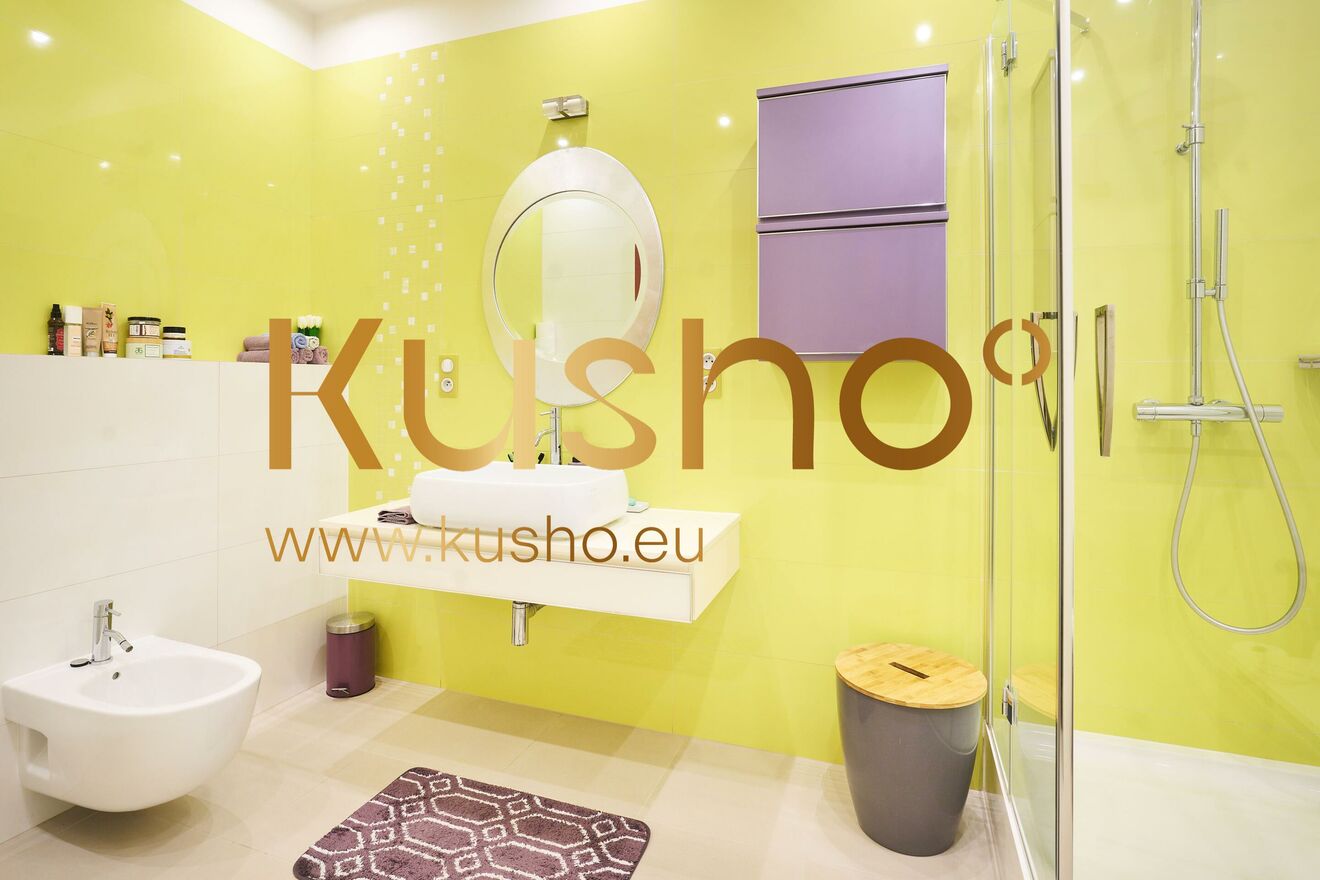 łazienka wykończona glazurą Concorde (Włochy), z włoską armaturą i szafkami Artesi.