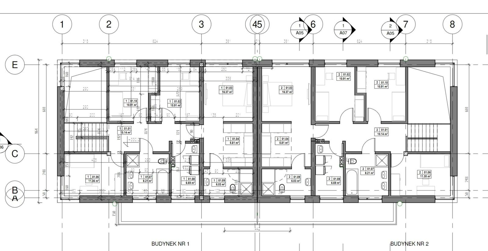 pokój 16,32m2 z garderobą 5,81 i łazienką 6,03m28, pokój 11,36,91m2, pokój 10,91m2, pokój 10,91m2, łazienka 8,21m2 korytarz 10,14m2, pomieszczenie gospodarcze 6,69m2.