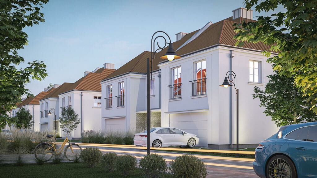 Do sprzedaży niezwykle eleganckie i prestiżowe domy w zabudowie bliźniaczej (dwulokalowej) oraz jednorodzinnej, zbudowane w stylu klasycznym - angielskim. Są to prawdziwe wille miejskie, o bardzo wysokim standardzie wykończenia. Znajdują się na terenie kameralnego osiedla tworzącego harmonijną całość. Osiedle składać się będzie docelowo z 24 domów mieszkalnych, z garażami na dwa samochody każdy oraz z dwoma dodatkowymi miejscami postojowymi przed każdym domem.