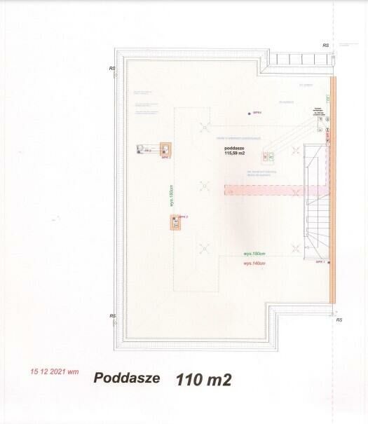Wysokości pomieszczeń to 3,0 m na parterze i 2,80m na piętrze. Poddasze ponad 5 metrów wysokości!