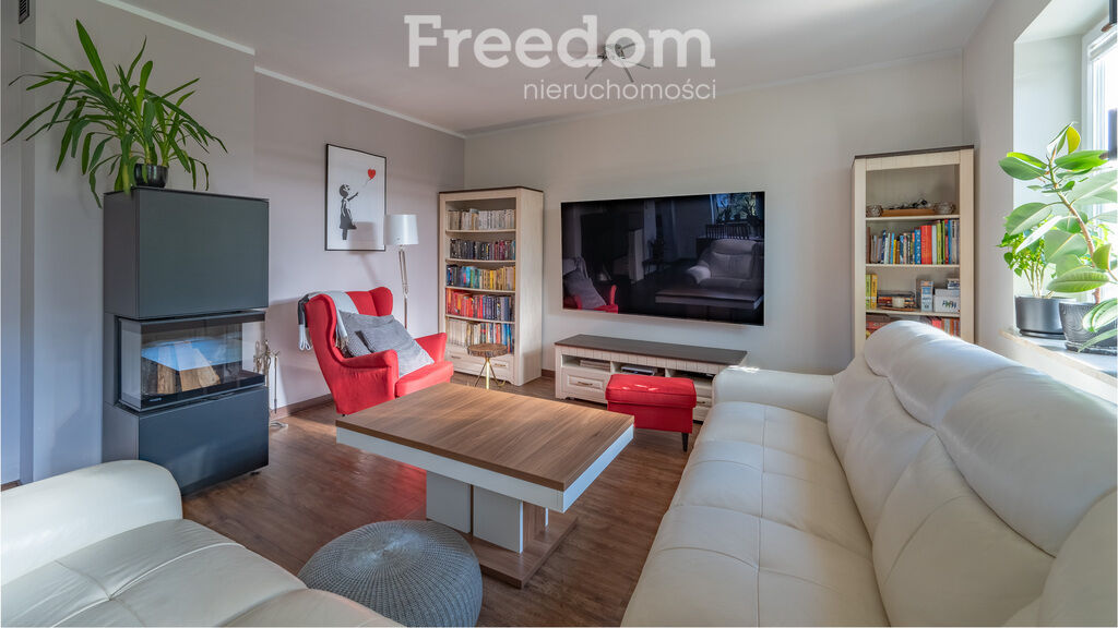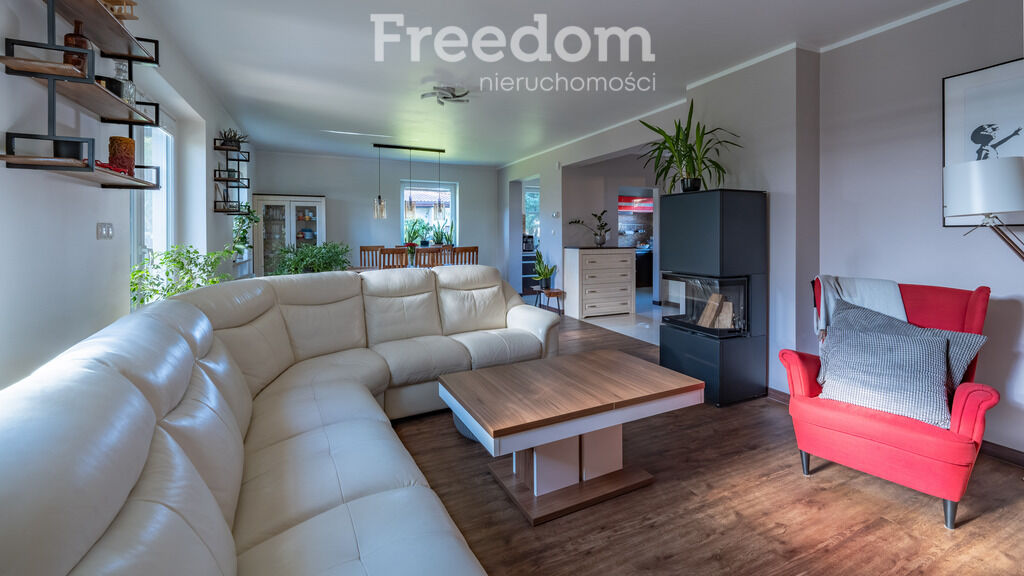 zabudowie, przestronny salon z piecykiem typu koza i wyjście na duży