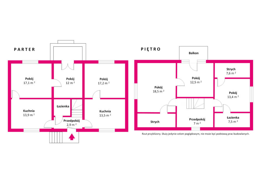 Dom o powierzchni 150 m² oferuje 7 pokoi, 2 kuchnie i 2 łazienki.