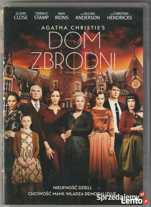 Dom zbrodni [DVD] Agatha Christie's Crooked House Kraj: Wielka Brytania, USA Rok produkcji: 2017 Reżyseria: Gilles Paquet-Brenner Scenariusz: Agatha Christie, Julian Fellowes, Gilles Paquet-Brenner, Tim Rose Price Muzyka: Hugo de Chaire Obsada: Roger Ashton-Griffiths, Terence Stamp, Trevor Cooper, Glenn Close, Julian Sands, Gino Picciano, Gillian Anderson, Christina Hendricks, Denis Lill, David Cann, John Heffernan, Christian McKay, Jenny Galloway, Rudy Valentino Grant, Amanda Abbington, Honor Kneafsey, Preston Nyman, Max Irons, Jacob Fortune-Lloyd, ... Studio: Sony Pictures Opis W jednym z najbardziej zagmatwanych kryminałów Agathy Christie, prywatny detektyw Charles Hayward (Max Irons), na prośbę swej byłej kochanki, wnuczki ofiary, stara się rozwikłać sprawę tajemniczej śmierci zamożnego patriarchy Aristide'a Leonidesa. Ma wskazać zabójcę zanim Scotland Yard odkryje mroczne sekrety rodziny Leonidesów. W ogromnej posiadłości, w atmosferze zazdrości, wzajemnych pretensji, żali i rozgoryczenia, Hayward poznaje trzy pokolenia potężnego rodu, a między innymi aktorkę teatralną (Gillian Anderson), wdowę po staruszku o 50 lat od niego młodszą (Christina Hendricks) i głowę rodziny, stateczną matronę Lady Edith de Haviland (Glenn Close). Stan produktu Produkt ORYGINALNY. Tytuł: Dom Zbrodni Dział: DVD Kategoria wiekowa (MPAA): PG-13 Czas trwania: 111 min. Dodatki: bezpośredni dostęp do scen menu interaktywne Napisy: polskie, angielskie, bułgarskie, chorwackie, czeskie, duńskie, fińskie, islandzkie, norweskie, rumuńskie, serbskie, słowackie, słoweńskie, szwedzkie, węgierskie Dźwięk: Dolby Digital 5.1 polski Dolby Digital 5.1 angielski Dolby Digital 5.1 czeski Dolby Digital 5.1 węgierski Polska wersja: lektor, napisy Obraz: 16:9 / 2,39:1 anamorficzny Region DVD: 2 Standard video: PAL Opakowanie: keep case Liczba nośników: [1xDVD] Karton 88 Ogłoszenie jest aktualne dopóki znajduje się na stronie . Odbiór osobisty lub wysyłkaSprawdź zainteresowanie tym ogłoszeniem