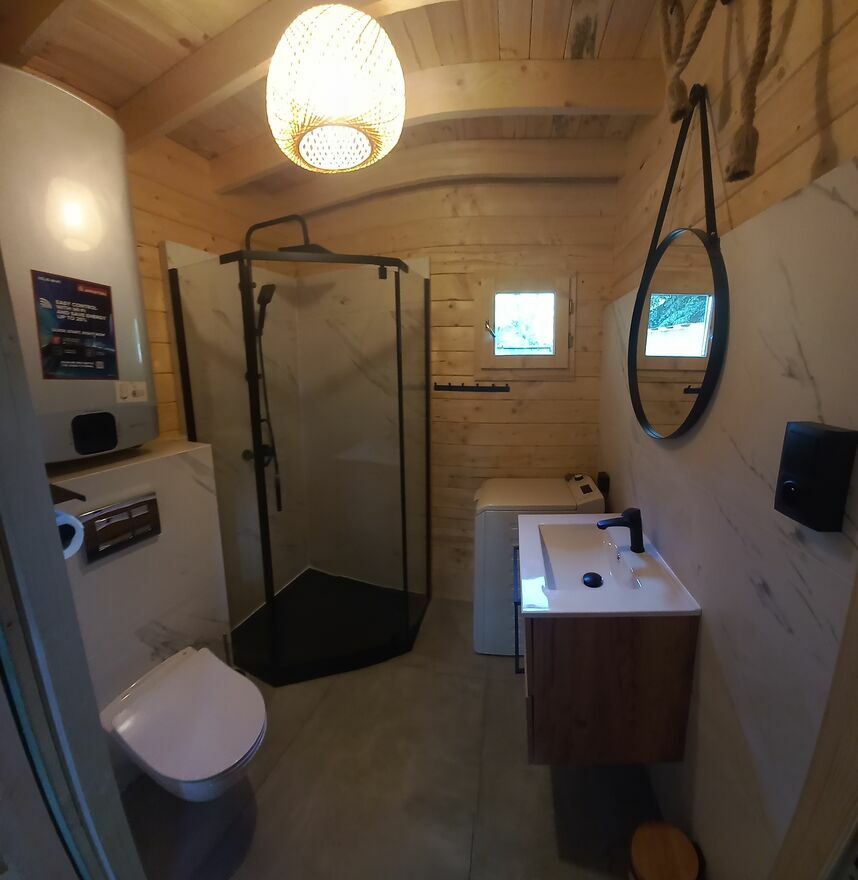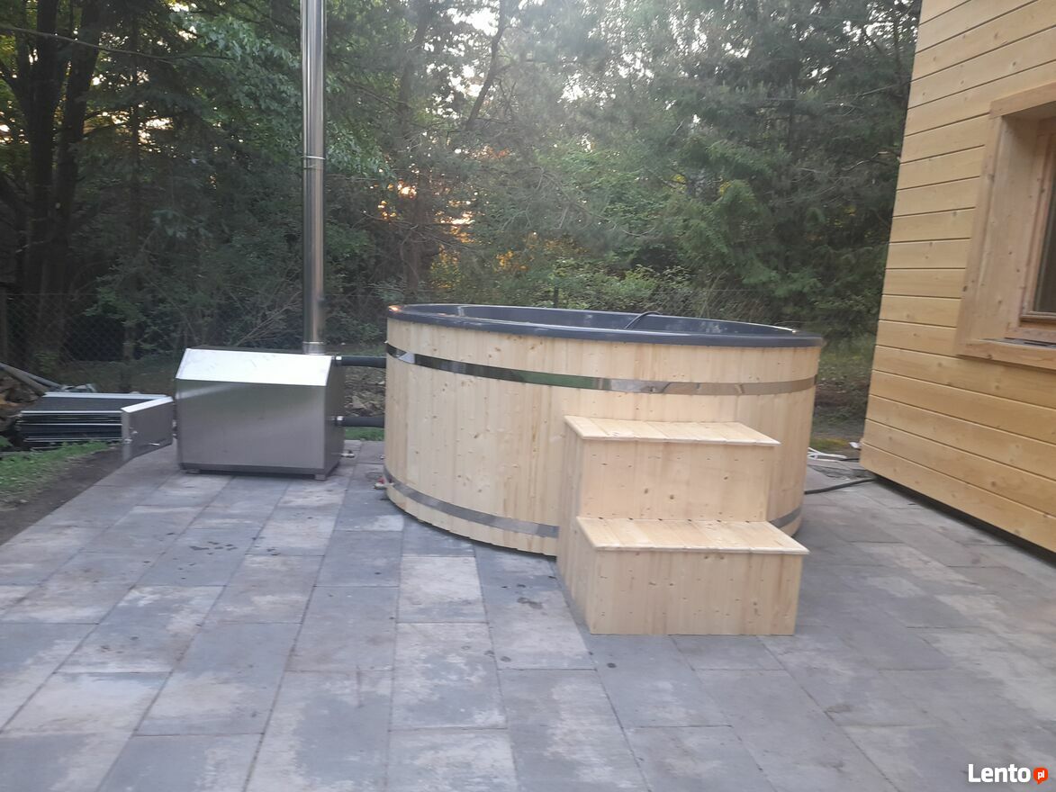 -balia opalana drewnem (czas pierwszego nagrzania wody do 40 stopni około 2h, następne zdecydowanie krócej).